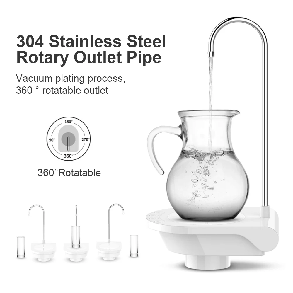 Высокая совместимость: Этот Электрический диспенсер для воды подходит для большого разнообразия питьевой воды в бутылках, совместим с 4.5L/7.5L/10L/11.3L/18.9L бутылки для воды.