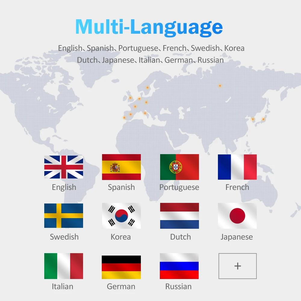 Корейский, испанский, португальский, французский, шведский, английский, голландский, японский, итальянский, немецкий, русский
