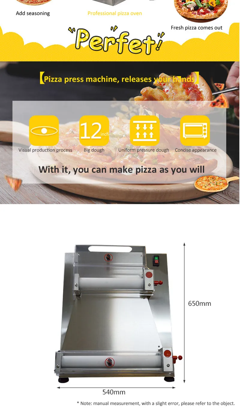 Наименование: полуавтоматическая машина для теста Вес теста: 50-500 г Частота: 50 Гц Вес: около 42 кг Мощность: 370w Напряжение: 110 В/220 В Размер пиццы: 10-40 см 15 дюймов Размер: 540*550*650 Материал: плотная нержавеющая сталь