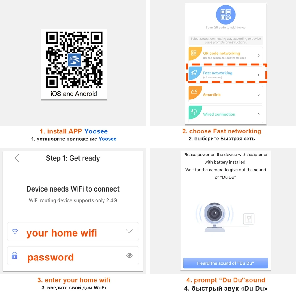 1. Поддержка 2,4G wifi 802,11 b/g/n 2. Поддержка проводного подключения POE 3. HD 1080P 200 Вт пикселей 3. Объектив камеры 150 градусов горизонтальный угол 4. Приложение Yoosee поддерживает Android / iOS 5. Поддержка CMS клиента Windows 6. Поддержка ночного видения IR CUT без отклонения цвета, B/W ночное видение 7. Максимальная Поддержка карты памяти 512 ГБ 8. Поддержка полнодуплексного разговора 9. Посетитель нажмите кнопку вызова, сообщение будет нажмите на смартфон 10. Режим записи поддерживает руководство, будильник, запись расписания