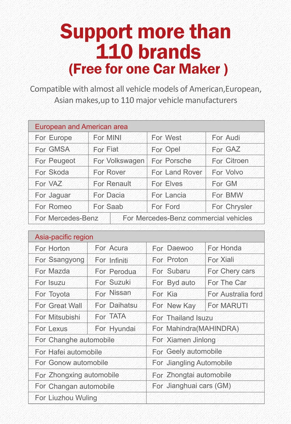 Поддержка накидка до более чем 110 основных производителей автомобилей из Америки, Европы и Азии: