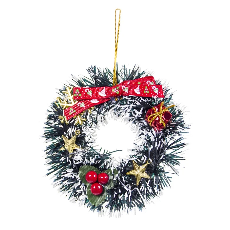 Описание изделия: Материал: ткань, пластик, ротанг Форма: Круглый венок Размер гирлянды: 50 см/19.6 дюймов/40 см/55 см/20 см/12 см/35 см мини-Рождественская елка Размер: 15 см/5,9 дюйма Количество штук: 1 шт. В комплект входит: 1 искусственный венок