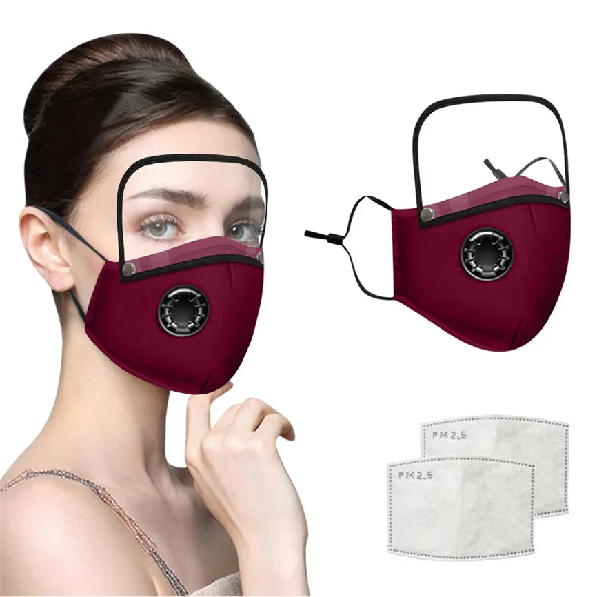 Взрослые Моющиеся Многоразовые маски для лица с фильтром и съемным щитом для глаз