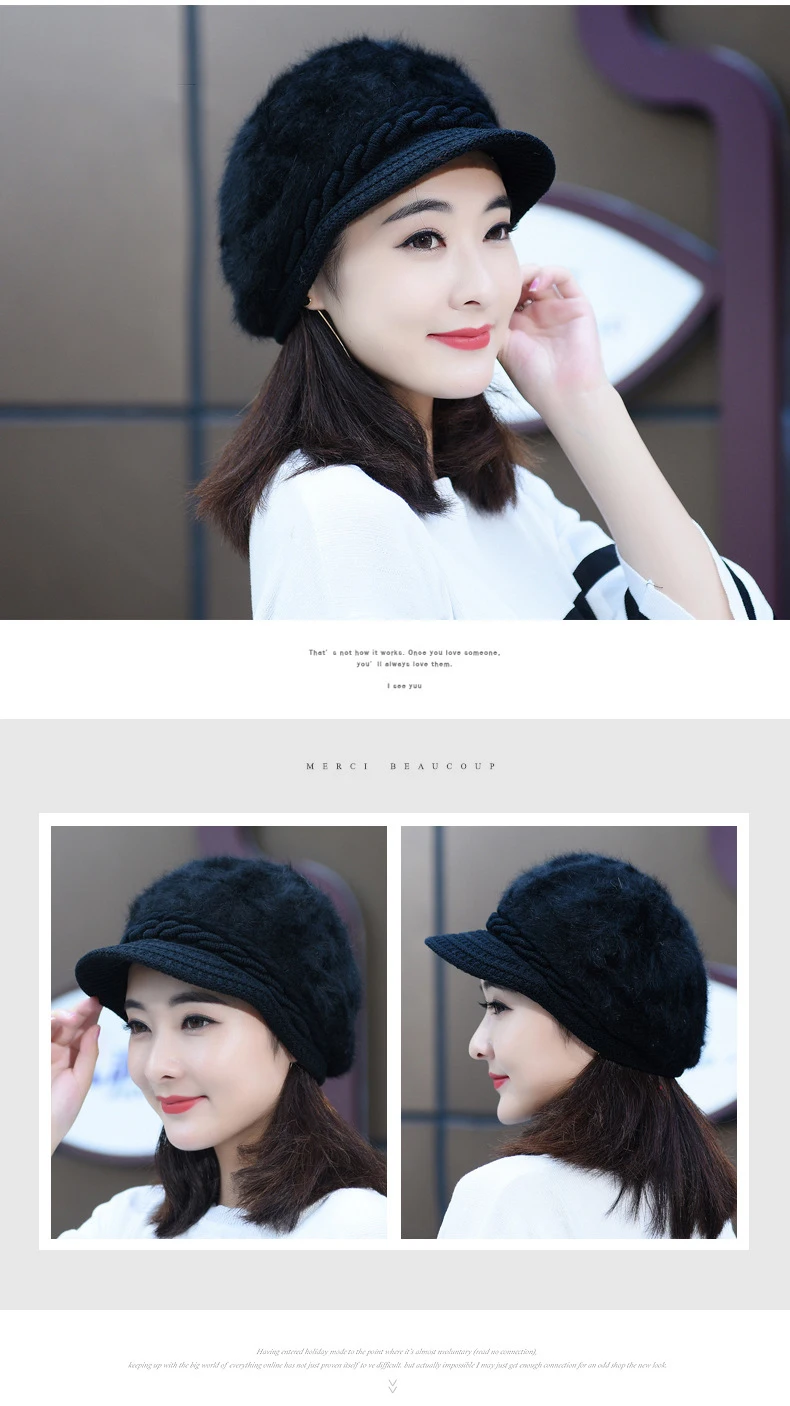Женская шапка, зимняя шапка из искусственного меха кролика, Новая Зимняя шерстяная шапка, утолщенная теплая вязаная шапка, шапки для женщин, шапка для женщин Вес 125 г Цвет 8 Посылка размер 20*21*2 см