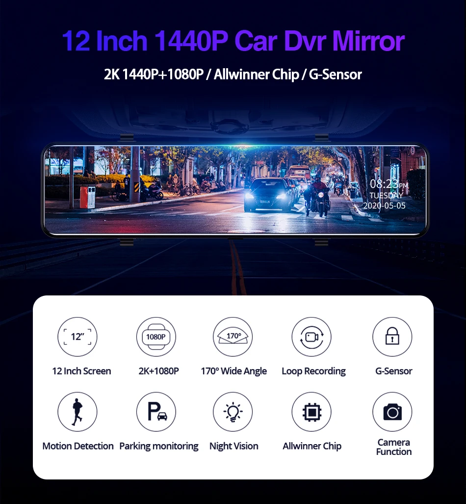 Фронтальная камера с углом обзора 170 градусов 1440P с углом обзора 140 градусов камера заднего вида ночного видения 1080P (опционально) позволяет одновременно записывать видео с двух разных углов. Два раздельных вида позволяют получить четкое изображение с передней и задней камеры.