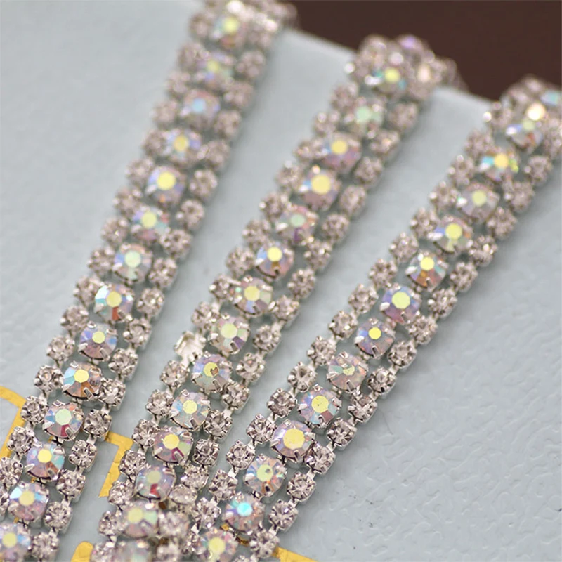 Трехрядные Стразы, белая цепочка AB, широкая Хрустальная чашка, цепочка, ручная работа, Хрустальная цепочка, стразы s, свадебное платье, аксессуары для DIY Материал: стеклянный кристалл Тип:Стразы flatback с горячей фиксацией DIY из хрустальной ткани Техника: Стразы с прямой основой Вид продукции: Горячая фиксация стразТкань ремеслаПодробное описание продукта Особенности