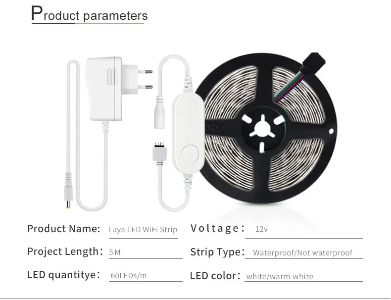 Тип 1: Светодиодная лента + штепсельная вилка европейского стандарта + WIFI контроллер