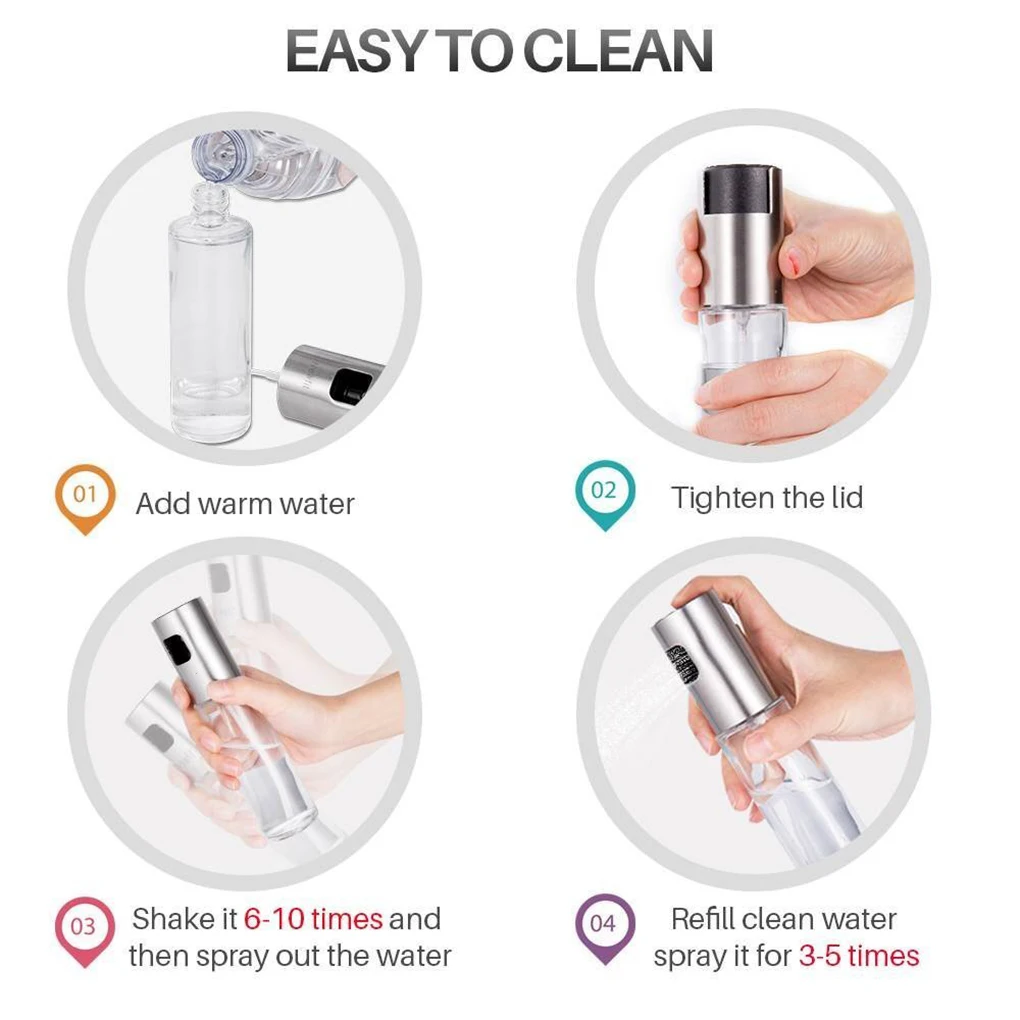 Распылитель производит туман масла или уксуса. Это делает спрей более равномерным, и вы можете точно контролировать количество масла, которое вы используете каждый раз, когда вы готовите.