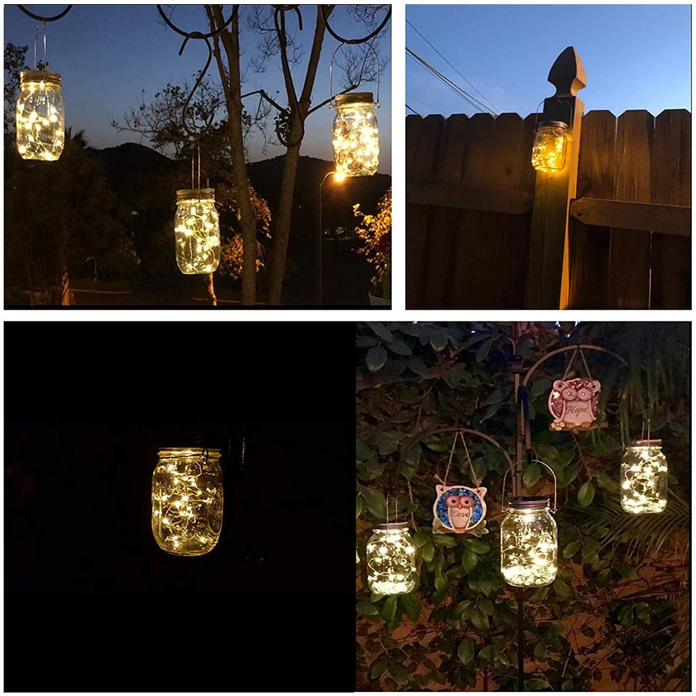 * Водонепроницаемый дизайн для наружного применения: класс водонепроницаемости IP45 (пожалуйста, плотно прикрутите крышки к баночкам), не нужно беспокоиться о том, что можно повесить на открытом воздухе, отлично подходит для сада, двора, патио, передней двери, рождественских украшений, просто нужно повесить его в любом месте, где вы хотите (рекомендуется под солнцем непосредственно для лучшей зарядки).