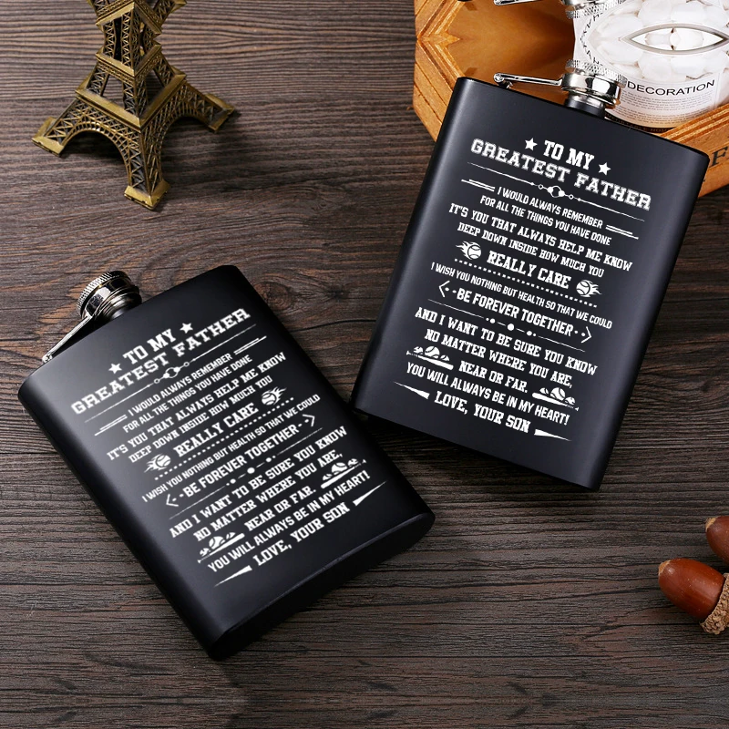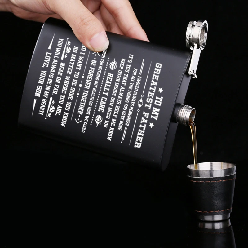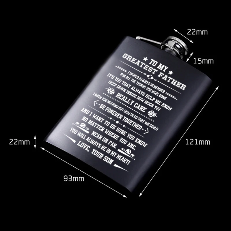 Вы ищете уникальный подарок для вашей любви? Ваши поиски закончены! Гравюрный Флагон идеален! Подарок, который он будет ценить на всю жизнь! Это Флагон с значимым сообщением, напечатанным на поверхности флагона, который помогает ему длиться навсегда. 1 унция = 28,35 г = 16 драм = 29,5 мл Особенности: Материал: нержавеющая сталь 304 Объем памяти: 8oz Вес: один 130 г (набор 320 г) Посылка включает в себя: 1x плоская фляжка