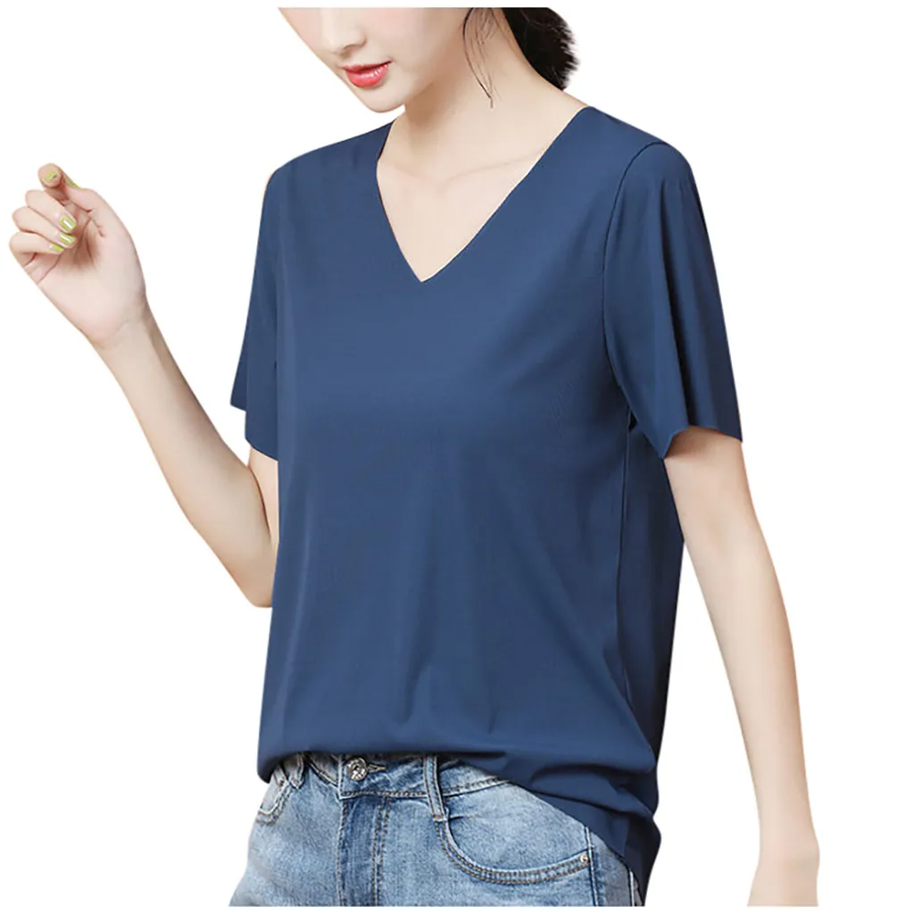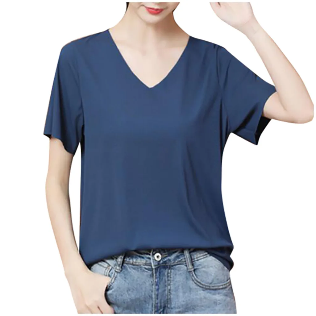 Особенности: Повседневная Блузка с короткими рукавами, v-образный вырез, футболка, женские топы, осень и весна.