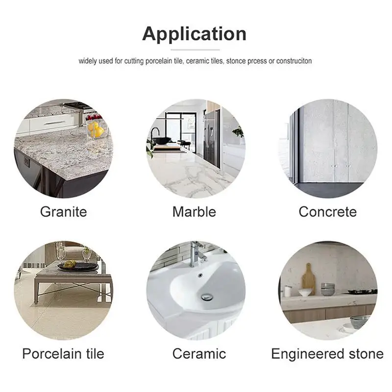 Эта алмазная пила совместима с сухой или влажной резкой и поддерживает большинство мраморных машин, станков для резки, угловых шлифовальных машин и т. д. Его можно широко использовать для резки, шлифования или полировки гранита, мрамора, бетона, асфальта, огнеупорного, фарфора и стекла.