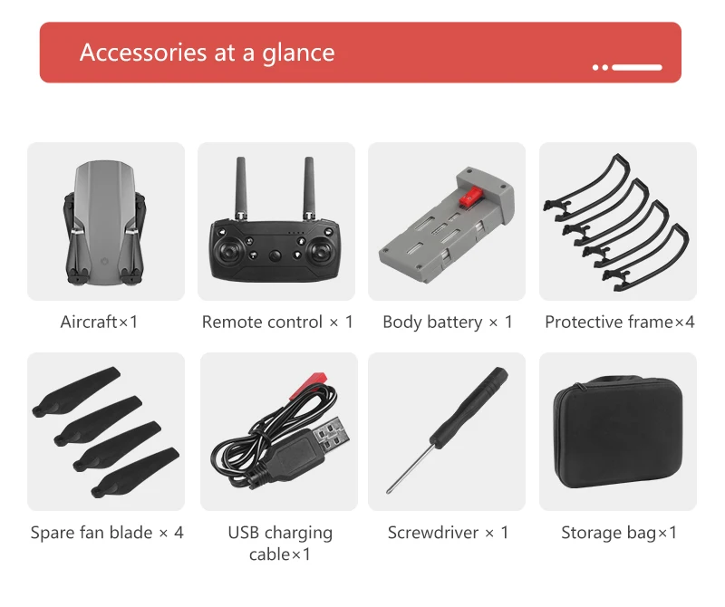 Стандартная конфигурация: корпус * 1 пульт дистанционного управления * 1 USB-кабель * 1 защитное кольцо * 4 запасных главных вентилятора * 2 отвертки * 1 Руководство * 1 батарея * 1 (см. Изображение для получения дополнительной конфигурации)