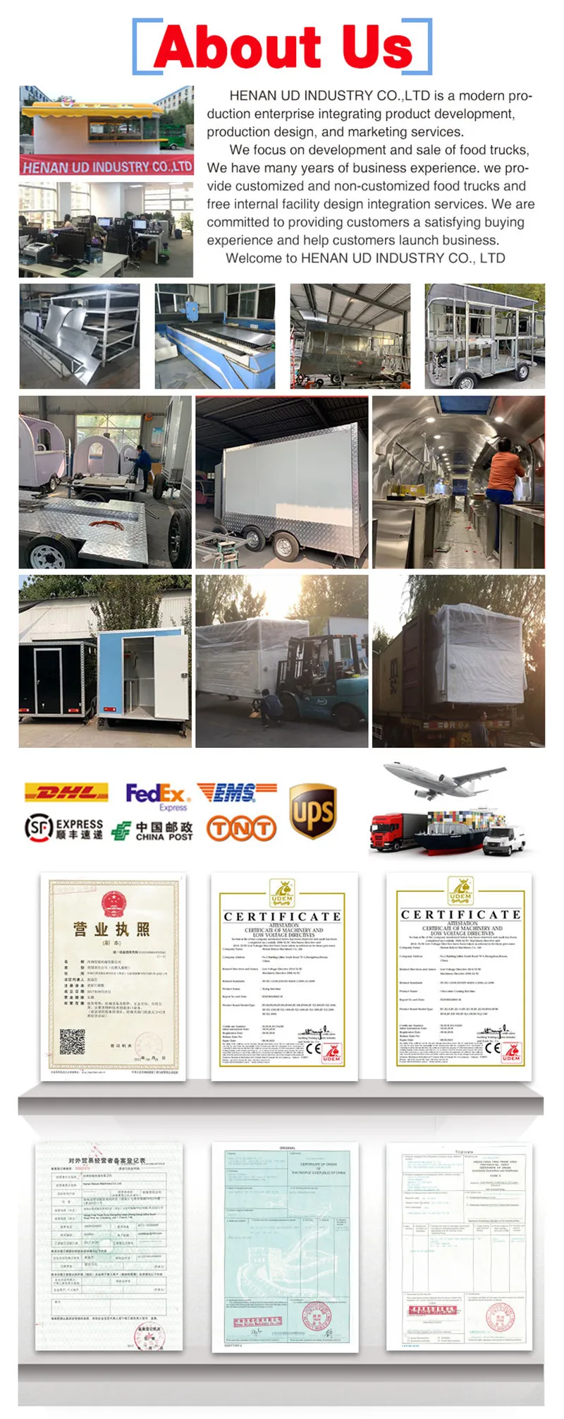 Советы клиентам:1.Тележка 0ur может быть использована для продажи картофеля фри хот-дога, ваффе, бутербродов, кофе, гамбургера и т. д., очень подходит для личного малого бизнеса или нескольких магазинов. У нас есть много стилей уличная тележка для еды на ваш выбор, почти каждая модель может быть использована для продажи разных закусок, А применение его просто в зависимости от внутренней кухонной утвари.2.Для внутреннего оборудования, если вам нужна какая-либо кухонная утварь или Кастомизация. Пожалуйста, сообщите Lacie, какие закуски вы хотели бы продавать внутри, чтобы можно было закрепить наиболее подходящие машины.3.Логотип и цвет изготовлены на заказ в соответствии с вашими потребностями.