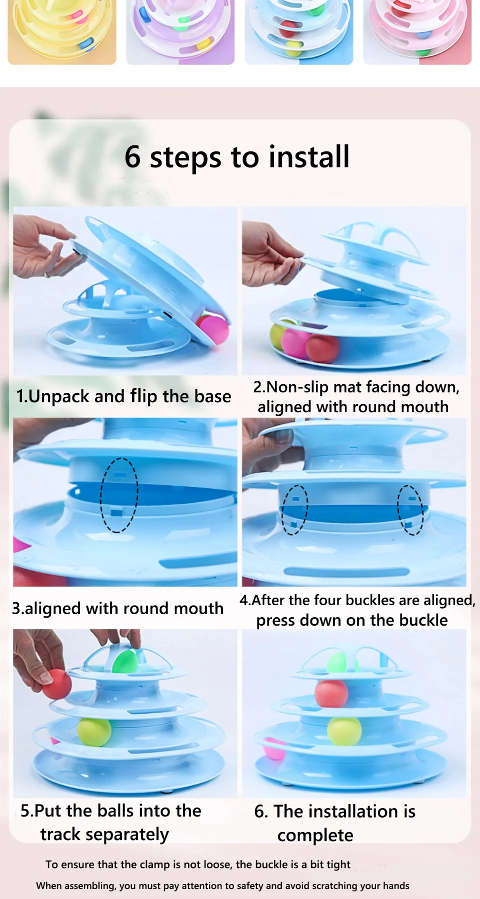 Тип товара: забавные игрушки для кошек для маленьких кошек Материалы: ПП пластик Количество: 1 шт. Размер игрушек: 24,5*16,5 см Цвет: синий, розовый, желтый, фиолетовый, белый Особенность: 1. Изготовлен из безопасных и экологичных АБС-материалов, съемная моющаяся конструкция, добавляет основание для ног, чтобы предотвратить царапины на полу и защитить домашнюю обстановку. 2. Игрушка спроектирована из четырех слоев с 3 движущимися красочными шариками, она может быть более привлекательной для кошек, позволит вашим кошкам восстановиться после скучной жизни. 3. Интерактивный трек, катающийся шариками, помогает вашим питомцам в здоровой погоне. 4. Он может тренировать ваших питомцев естественными инстинктами, чтобы ваши кошки вели себя шустро. Совет: -Из-за ручного измерения размеры могут отличаться на 1-3 см. -Из-за различных мониторов и условий освещения цвета могут немного отличаться от приведенных фотографий, пожалуйста, обратите внимание, спасибо