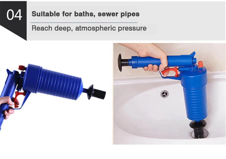 Dredge Plug Air Pump Pressure Pipe Plunger Drain Cleaner Sewer Sinks Blocked Blockage Basin Pipeline Clogged Remover Bathroom Kitchen Toilet Cleaning Tool Specification: Material: ABS plastic Mouth material: rubber Size: 27.5*28.5cm/10.83*11.22in Weight: 650g Applicable scope: toilet, floor drain, sinks, sewers, bathrooms and other pipe dredging.