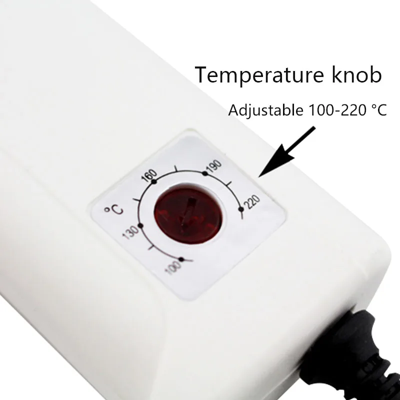 Регулируемая температура: есть циферблат, который перемещается между 100 по Цельсию-220 по Цельсию для различного использования, скорость потока клея отличается в зависимости от разной температуры, И вам, возможно, потребуется использовать небольшую плоскую отвертку, вращающуюся на циферблате, чтобы изменить температуру.