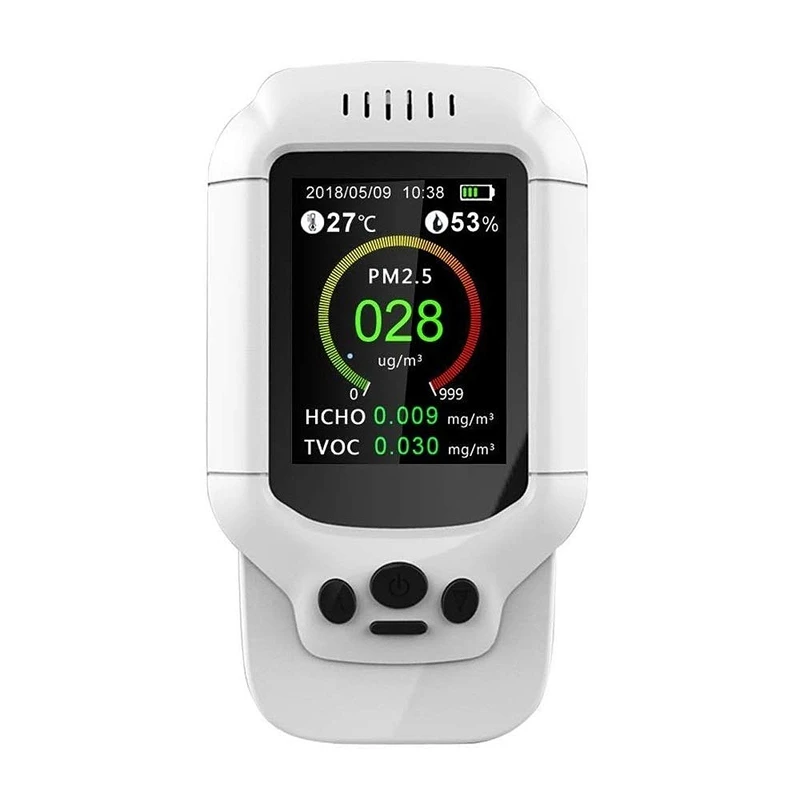 Многофункциональный и научный-этот монитор качества воздуха в помещении точно определяет температуру (в C/F), уровень влажности и различные измерения качества воздуха, включая концентрацию формальдегида, общее количество натуральных и синтетических летучих органических соединений, вызывающих большинство запахов (TVOC), и мелкодисперсных частиц пыли (PM2.5/PM1.0/PM10), которые глубоко проникают в дыхательные пути, Доходит до легких альвеоли.