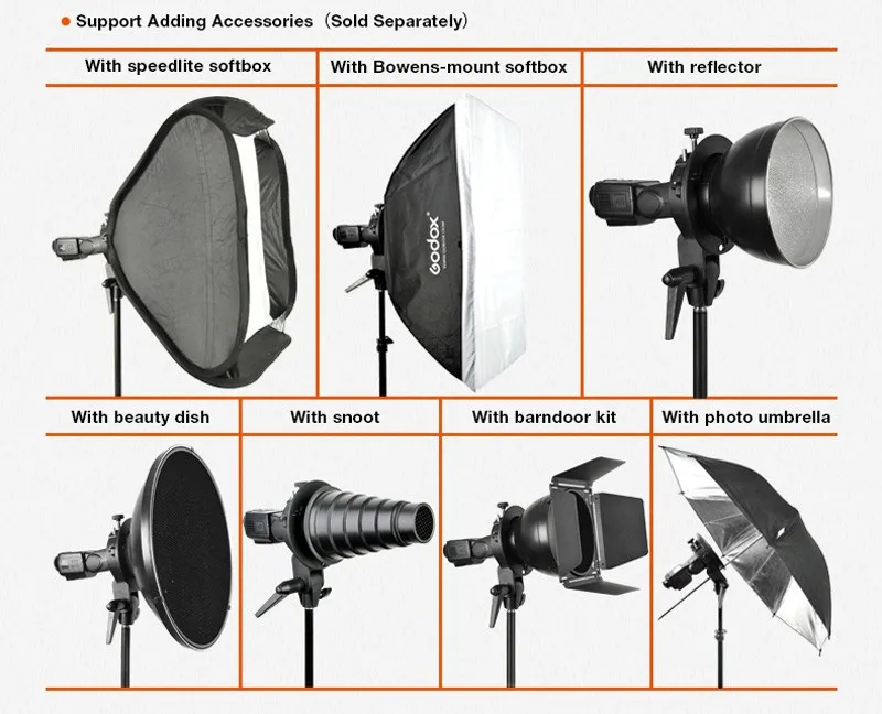 1 * кронштейн Godox s-типа 1 * софтбокс Godox 2 * сумка для переноски 1 * Руководство пользователя