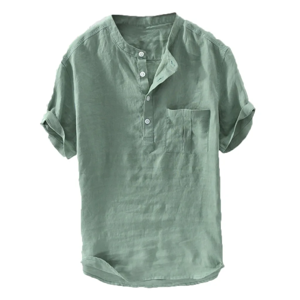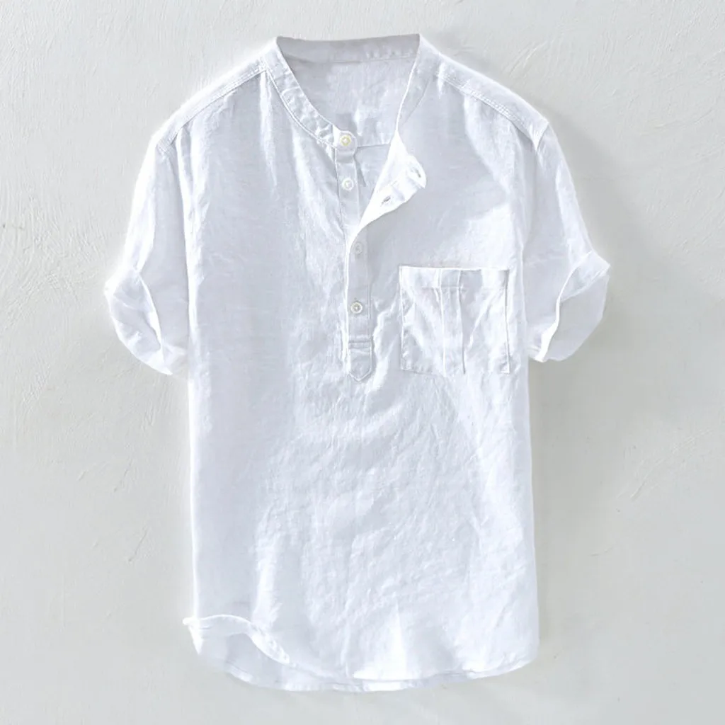 Мужская Летняя новинка из чистого хлопка с пуговицами из конопли, с короткими рукавами, модная большая блузка, Топ