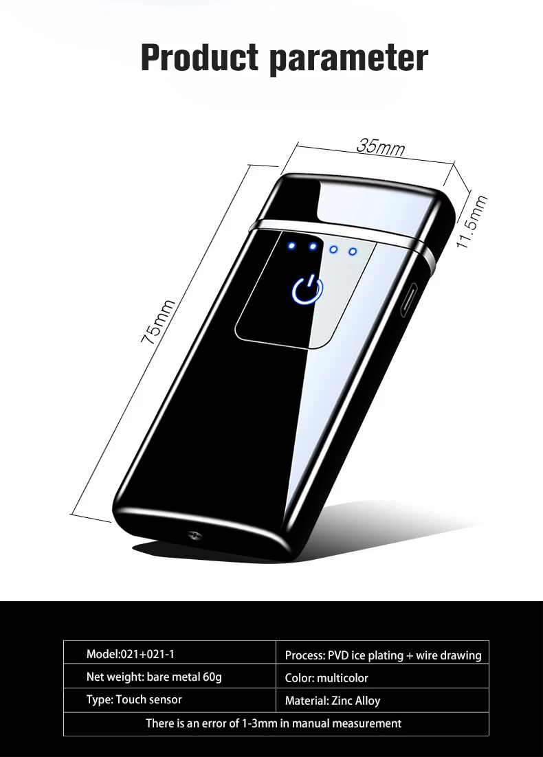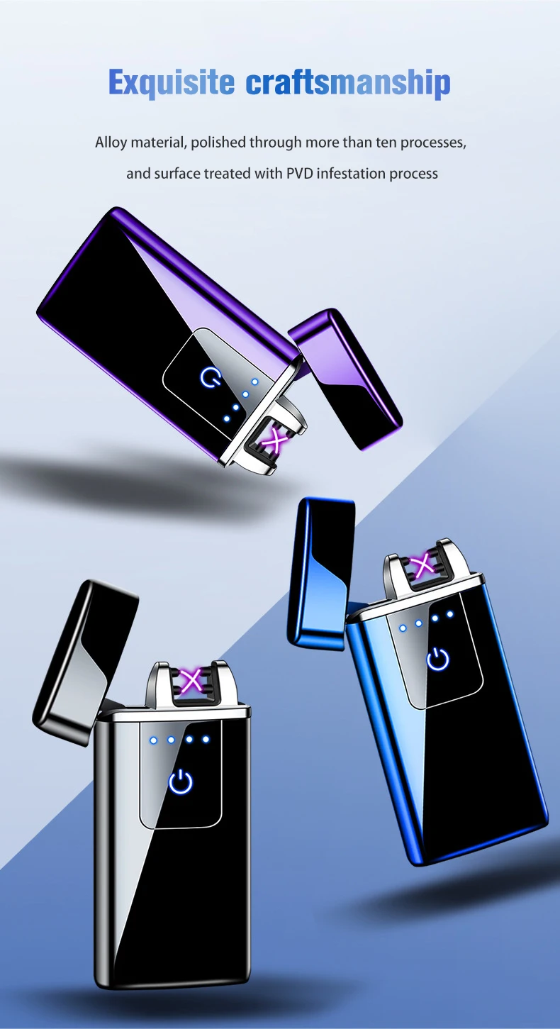 Touch Fire электрическая зажигалка с подключением к USB зарядная Зажигалка для сигарет ветрозащитная металлическая двойная плазменная дуговая Зажигалка гаджеты для мужчин