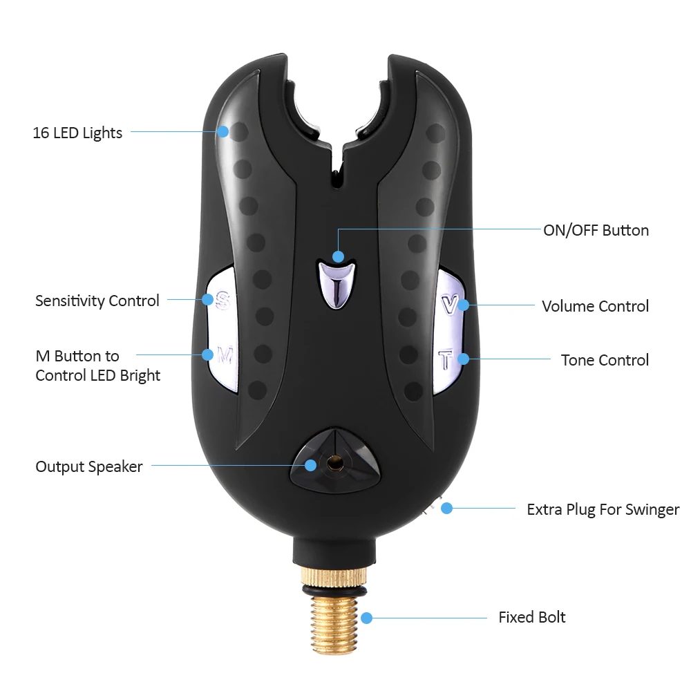 Беспроводной пульт дистанционного управления сигнализацией от укуса не только имеет звуковой сигнал и светильник во время укусов рыбы, но и посылает сигнал на расстояние более 100 метров, так что вы можете уйти или отдохнуть с приемником, не бойтесь пропустить рыбу на крючках.