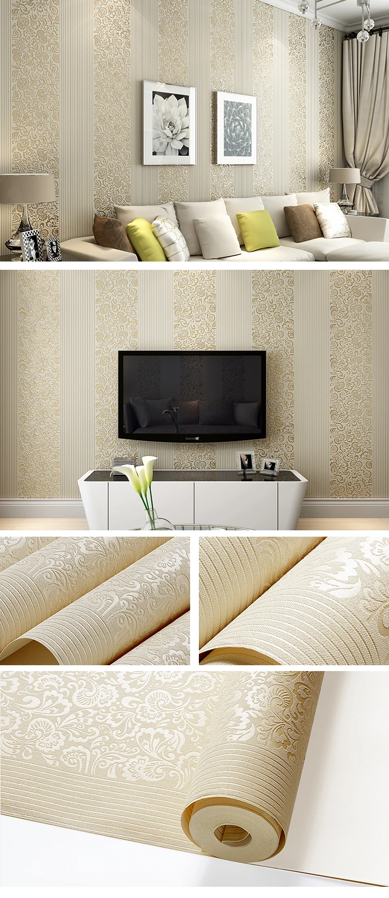 Обои для украшения дома роскошные обои для спальни 3d толстые полосатые обои Европейский стиль большой тисненый цветок обои наклейки