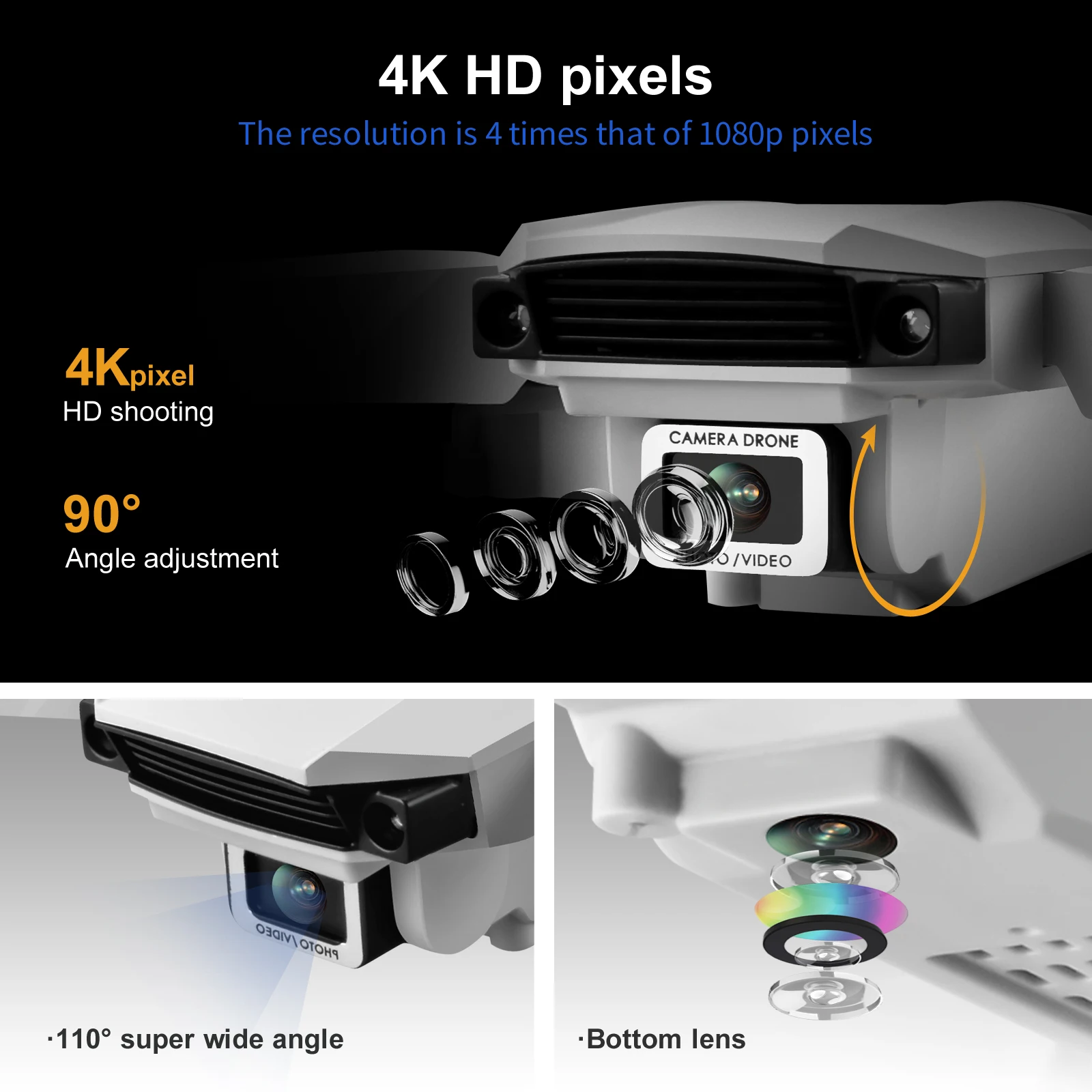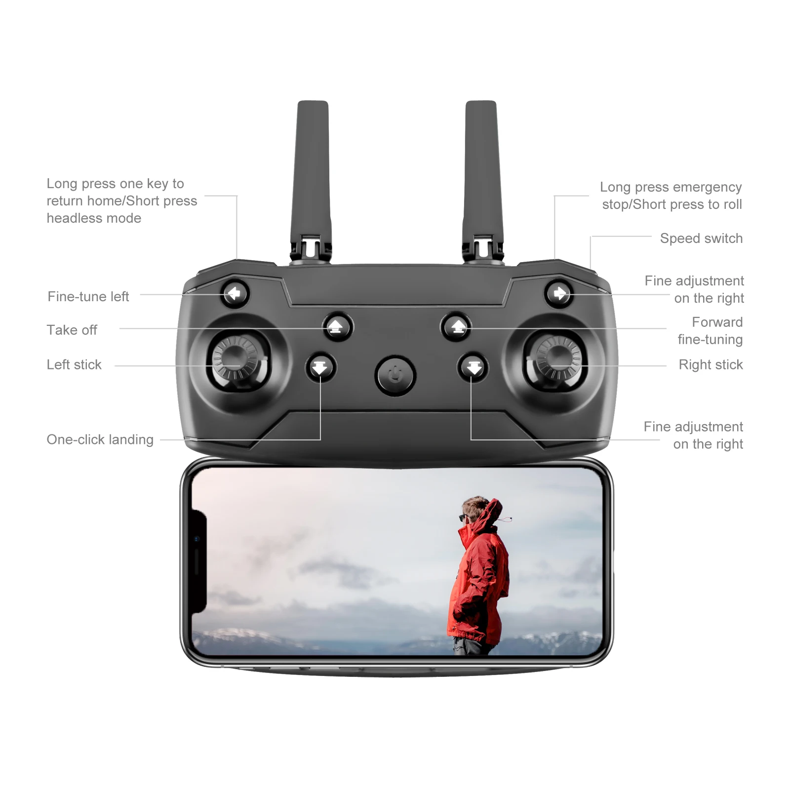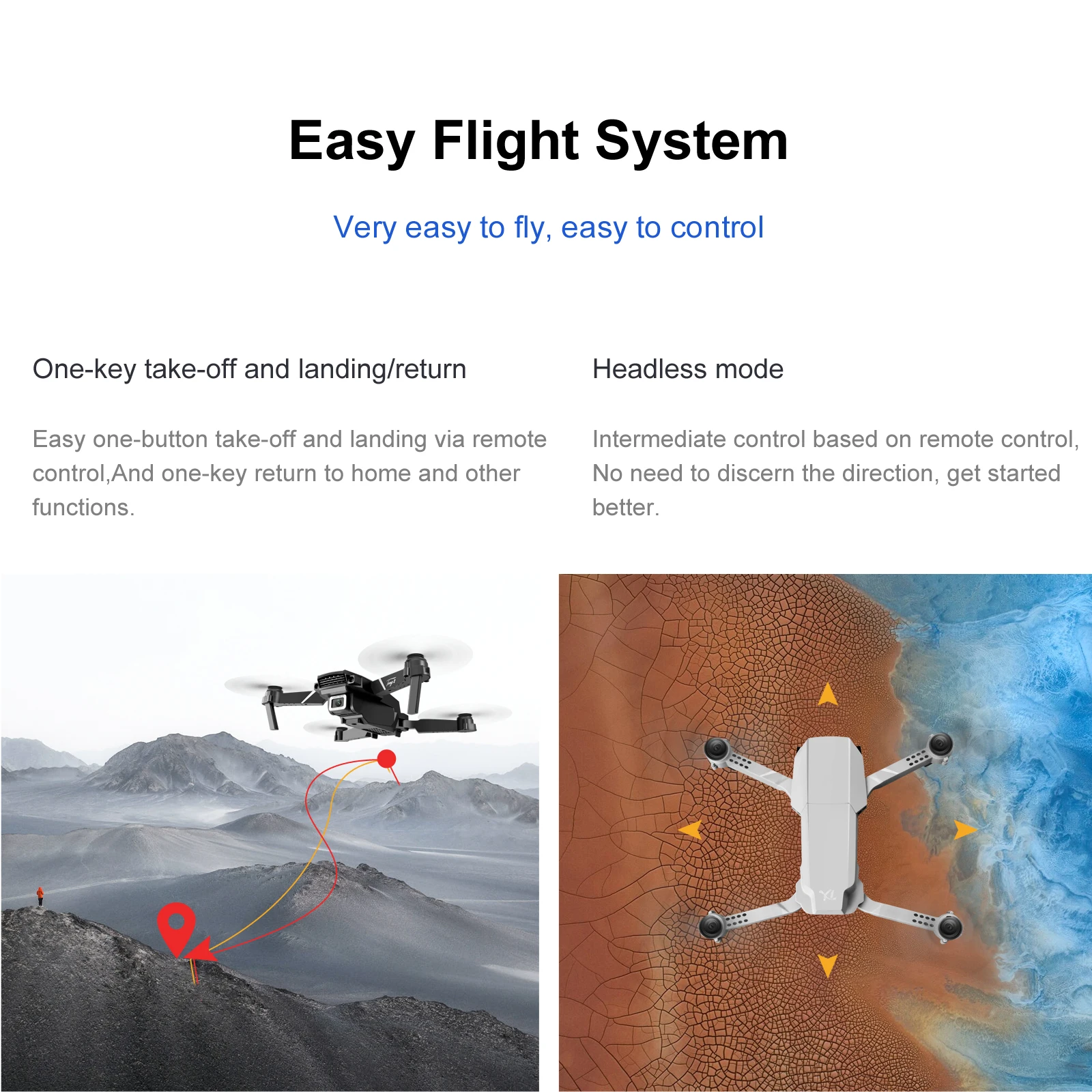 Материал: АБС-пластик и электронные компоненты Цвет: черный/серый белый Версия: без камеры, включая камеру 1080P, включая камеру 4K/(опционально) Гироскоп: 6 оси Частота: 2,4G Канал: 4CH Батарея: 3,7 в 1000 мАч литиевая батарея (входит в комплект) Мощность передатчика: 3 батарейки типа АА (не входят в комплект) Режим передатчика: режим 2 (левая дроссельная заслонка) Время полета: около 15-18 минут Время зарядки: 60 минут Дистанция RC: 150 м С видом от первого лица: беспроводной доступ в Интернет Разрешение: 1080P, 4K Угол обзора камеры: 90 ° Размер квадрокоптера: 27x22,5x5 см (расширенный) Особенности: -Складные ручки, компактные и удобные для переноски. -Функция режима удержания высоты, стабильный полет. -В безголовом режиме нет необходимости регулировать положение самолета перед полетом. -500 Вт пикселей/4K пикселей HD камера. На удивление, он может снимать Потрясающие фотографии и видео с неба. -С функцией Wi-Fi вы можете подключиться к приложению, системе APK и делать фотографии, видео и передачу в реальном времени через Изображение камеры телефона. -Технология защиты от помех 2,4 ГГц. -4 подъема, спуск, вперед, назад, Лететь влево, Лететь вправо и 360 °» прокатки каналов. -Шестиосевой гироскоп, полёт более стабильный и управление более удобное. -Светодиодные фонари делают полет более эффектным, особенно в темноте. Функции: боковой полет, светодиодные фонари, WiFi FPV. Визуальное позиционирование. Переключения камеры. Двойная камера переключения, функция фиксированной высоты, самолет складной, шесть проходов гироскоп; Один ключ взлет, один ключ посадки, подъем и падение, вперед и назад, левая и правая сторона летит, поворот, Безголовый режим, съемка жестов, видеозапись, Безголовый режим, Аварийная остановка, траектория полета, Датчик гравитации, автоматическое фото Посылка включает в себя: 1 х Дрон 1 пульт дистанционного управления 1 Аккумулятор 3,7 в 1000 мАч 1 x usb-кабель для зарядки 4 запасных лопастей 4 защитные чехлы (1 шт.); Руководство