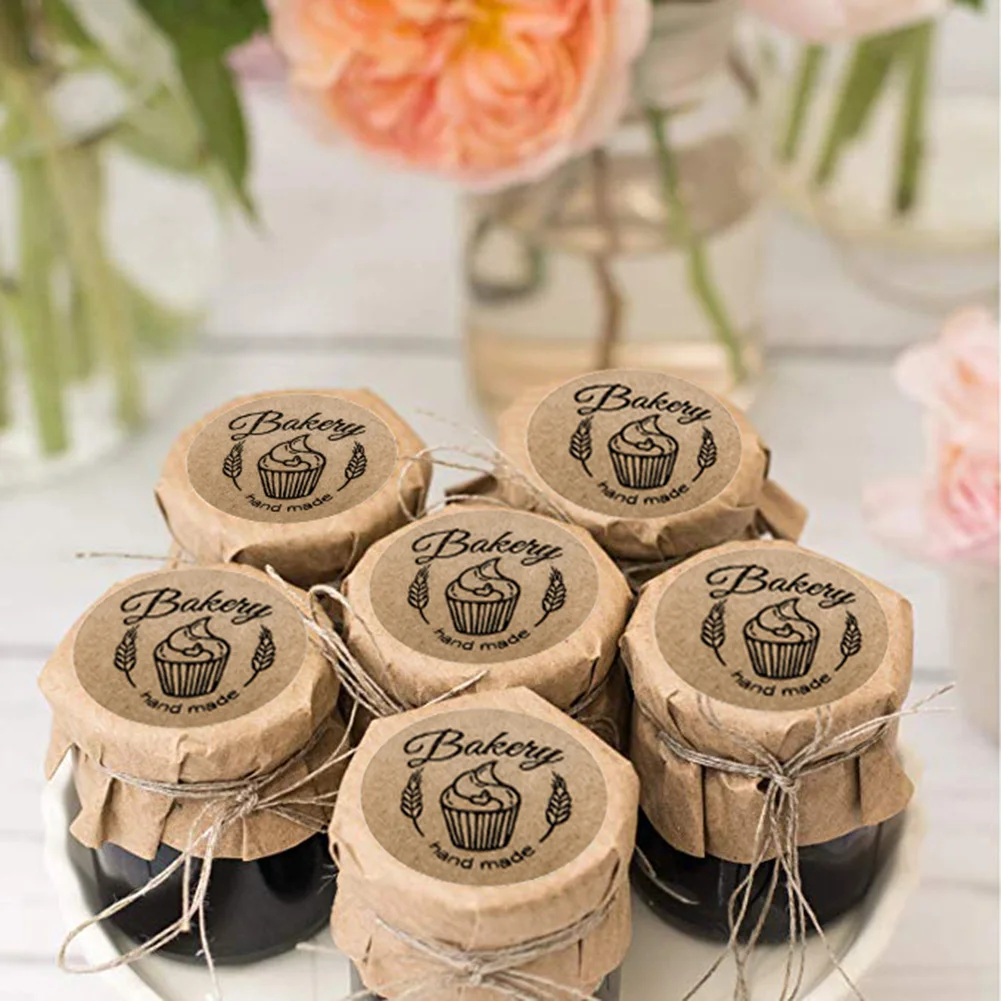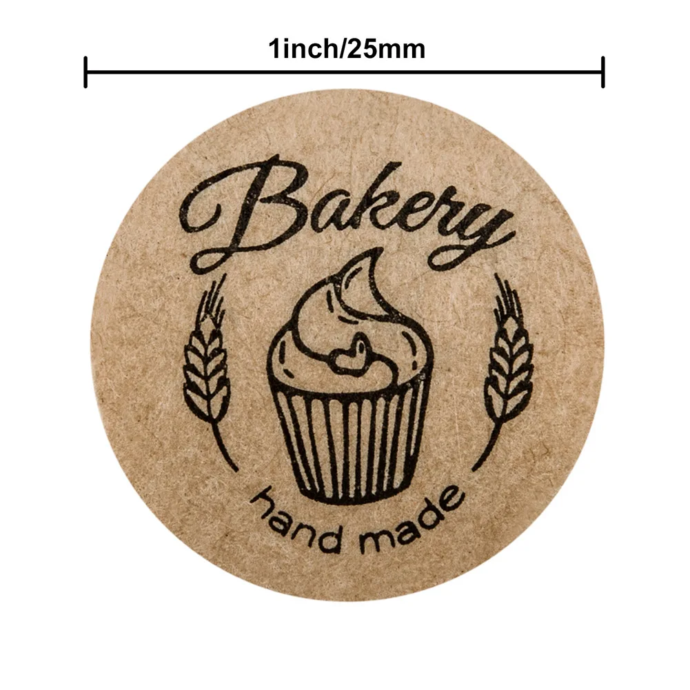 3. На наклейке изображено «Bakehy Handmade» в черных чернилах, и бумага имеет узор из сладких Горшков и листьев.
