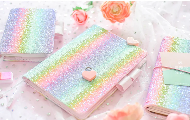 Милая блестящая тетрадь Дневник Обложка A5 A6 школа Радуга Розовый журнал тетрадь 2021 планировщик креативный многоразовый ноутбук Papeleria
