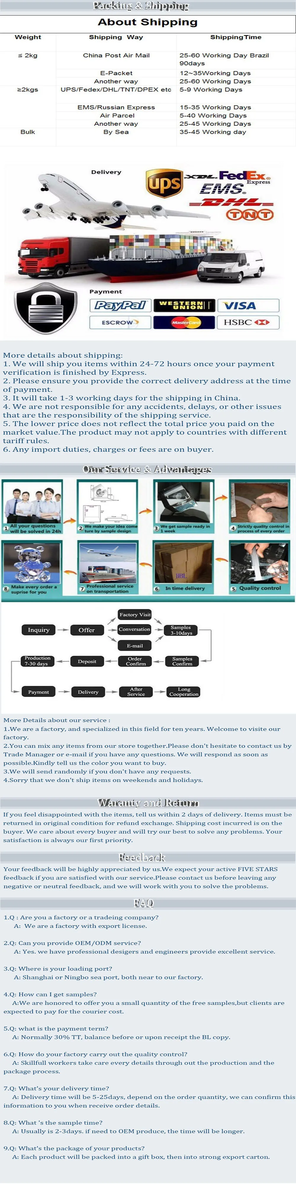 Название продукта:60 мм K9 прозрачный хрустальный стеклянный шар Материал:Кристалл k9 Размер:60 мм Цвет:Красный, топаз, синий, розовый, янтарный, зеленый, черный, сиреневый, Аквамарин Минимальный заказ:1 шт. Форма:Кристальная Сфера Хрустальный шар:Наш хрустальный шар изготовлен из лучшего в отрасли чистого материала k9, без искажений, цвета или включений с гарантией качества Безупречное качество:100% чистый оптический кристалл K9 материал стекла, безупречный, без пузырьков, без царапин. Гарантируем, что мяч в руках каждого потребителя не будет дефектным. Каждый хрустальный шар строго проверяется Магический хрустальный шар:Идеально подходит для фотографии, это отличный реквизит для фотографии. Украсьте свой дом и офис, фэншуй, уличное искусство, медитацию, хрустальное исцеление, гадание, домашнее украшение. После окончания фотосессии Этот прозрачный шар также станет изысканное украшение для ваших комнат Мощная функция очистки:Считается, что прозрачный кристалл очищает ваш ум и поглощает солнечный свет и лунный свет, чтобы повысить способность гадания. Роскошная прозрачная центральная часть или коллекция может добавить яркость и гармонию в ваше жизненное пространство или студию.Примечание: о хрустальном шарике, у нас также есть Хрустальная подставка и деревянная подставка. Пожалуйста, свяжитесь с нами, если вам нужна подставка!