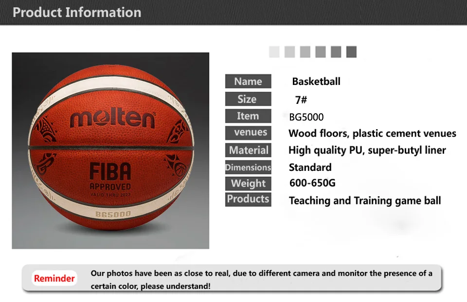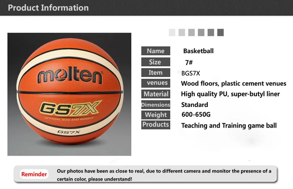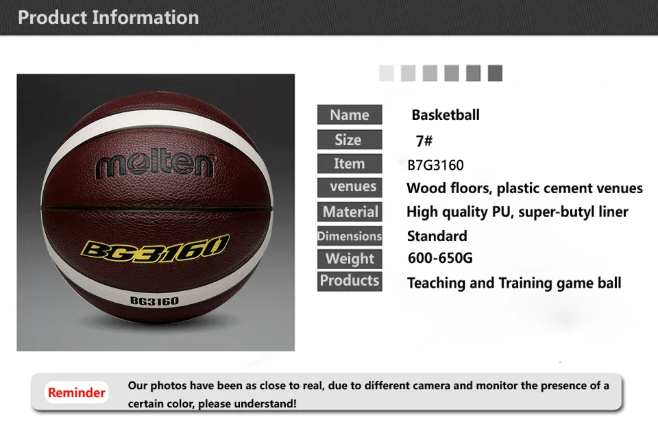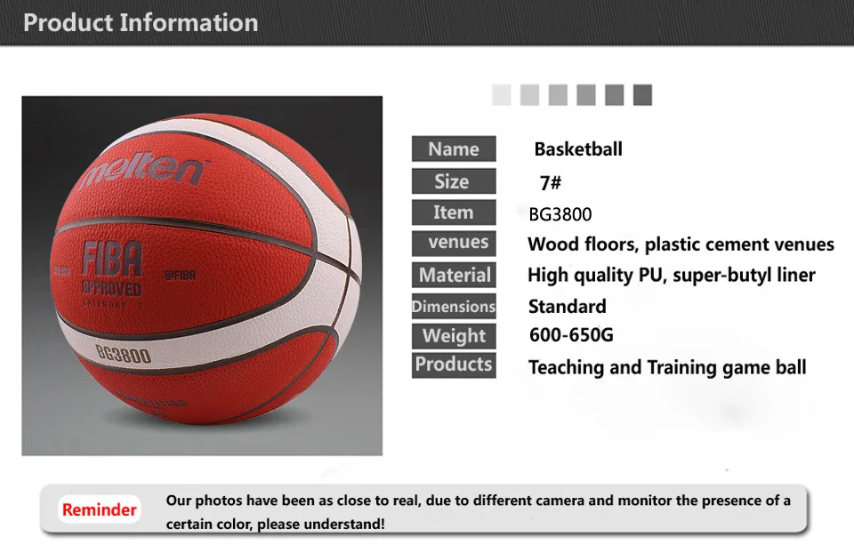 1. Утолщенная кожаная поверхность, фирменное передовое покрытие из микрофибры с идеальной прихваткой для оптимальной играемости, хорошо работает в теплостойкости и долговечности. 2. Нейлоновый армирующий слой и улучшенный резиновый внутренний пузырь. 3. Безупречный симметричный дизайн для идеально сбалансированного мяча без комочков или непоследовательных отскоков. 4. Специальный дизайн подушки дает шарикам более мягкое ощущение, более верный отскок, и более длительный срок службы. Примечание: 1. Пожалуйста, обратите внимание на размер мяча в цветном дисплее. 2. Реальный цвет может немного отличаться от изображения из-за многих факторов, таких как компьютер Разрешение экрана, контрастность и т. д. спасибо за понимание.