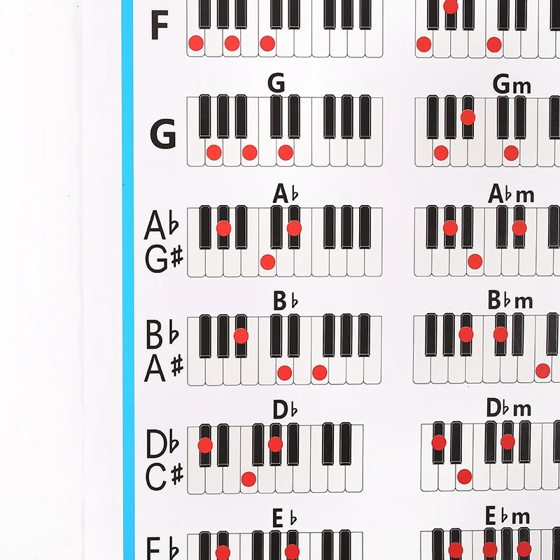Фортепиано Chords Chart Key Music Graphic Упражнение постер с креплением фортепиано Chord тренировка Chart 88-Key для начинающих фортепиано Fingering Chart Big