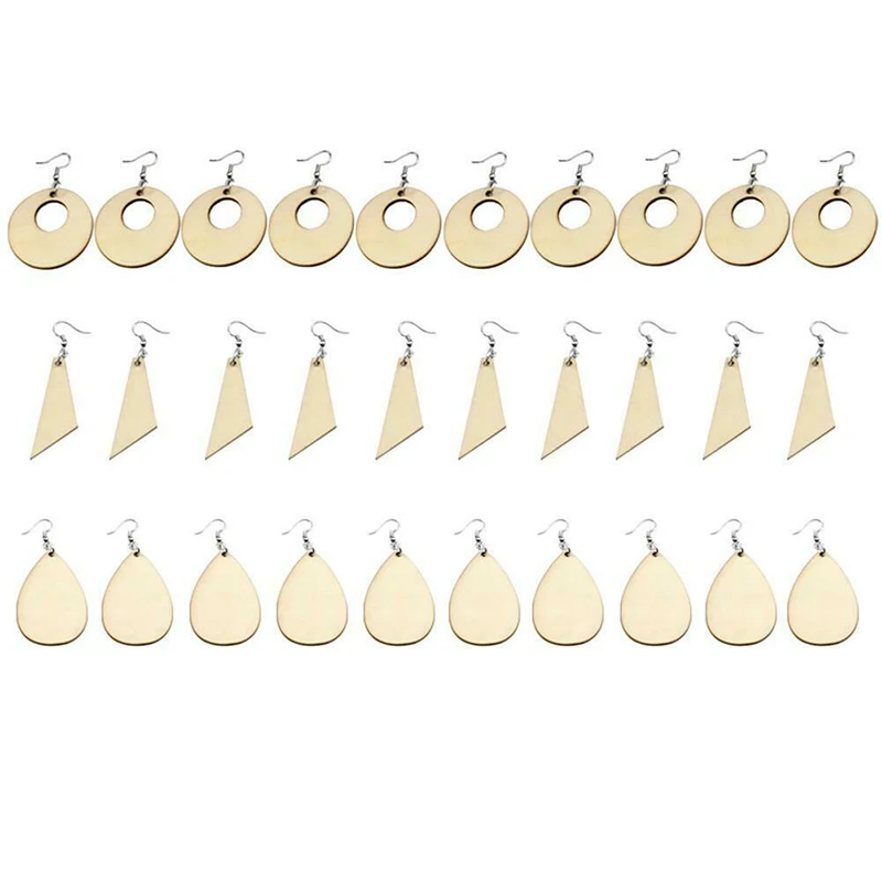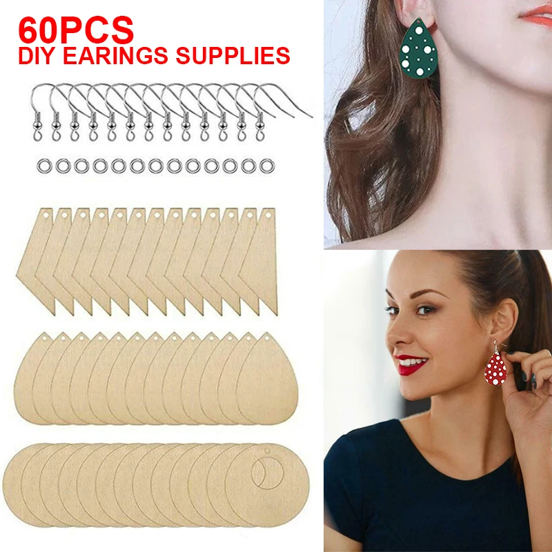 Посылка содержит 60 деревянных подвесок для сережек, 60 крючков для сережек и 60 сережек для прыжков.