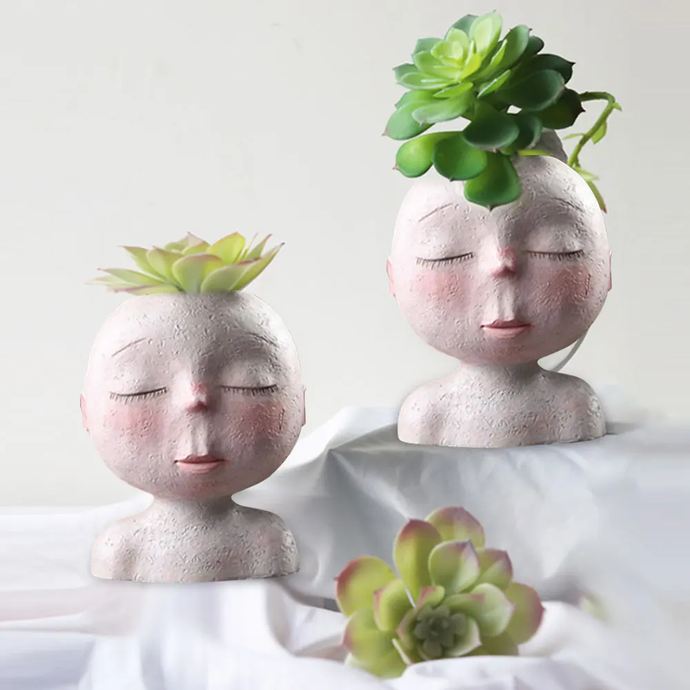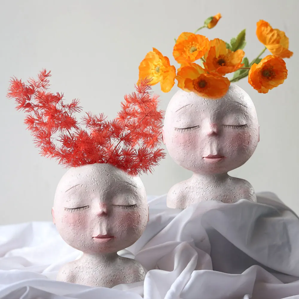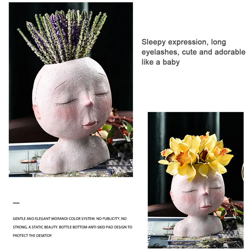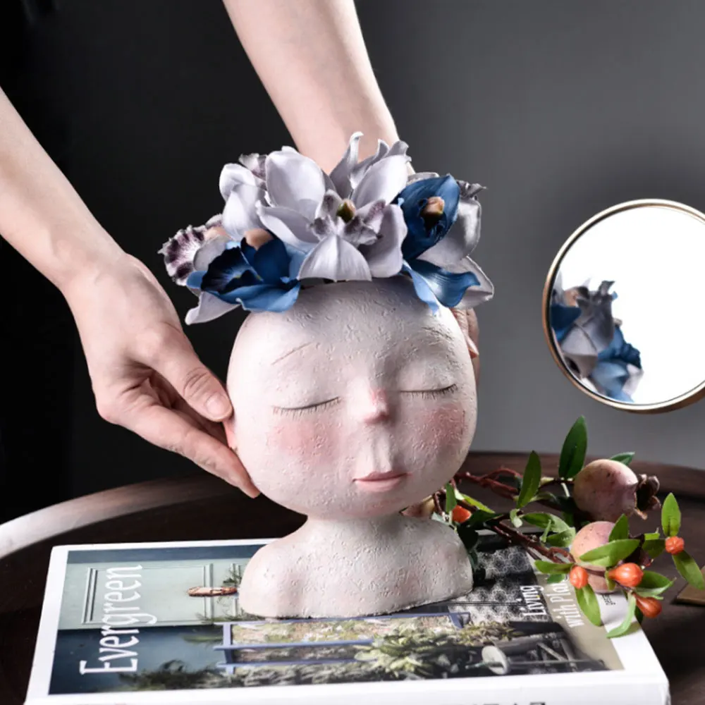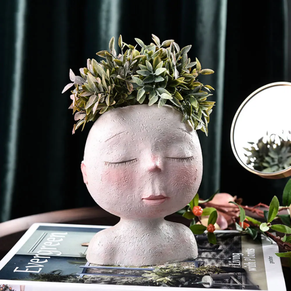 -Красивый Креативный цветочный горшок в форме головы делает растения похожими на женские волосы.