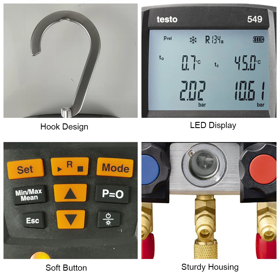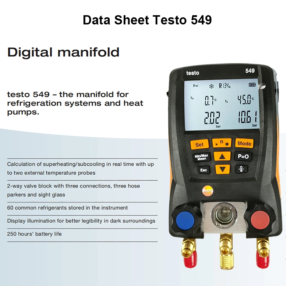 2. При проведении технического обслуживания или монтажных работ на холодильных системах и тепловых насосах вы все больше заметите, что использование аналоговых коллекторов является трудоемким и трудоемким? Если да, testo 549, наш цифровой коллектор начального уровня, является идеальным выбором для вас. Этот 2-полосная коллектор используется для 60 охладителей и предлагает практические решения для повседневной работы.