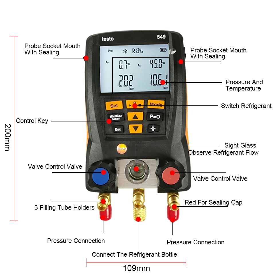 Оригинальный Testo 549 цифровой манометр для цифровой системы HVAC Тестер Комплект Измеритель ЖК-цифровой манометр Кондиционер Инструменты