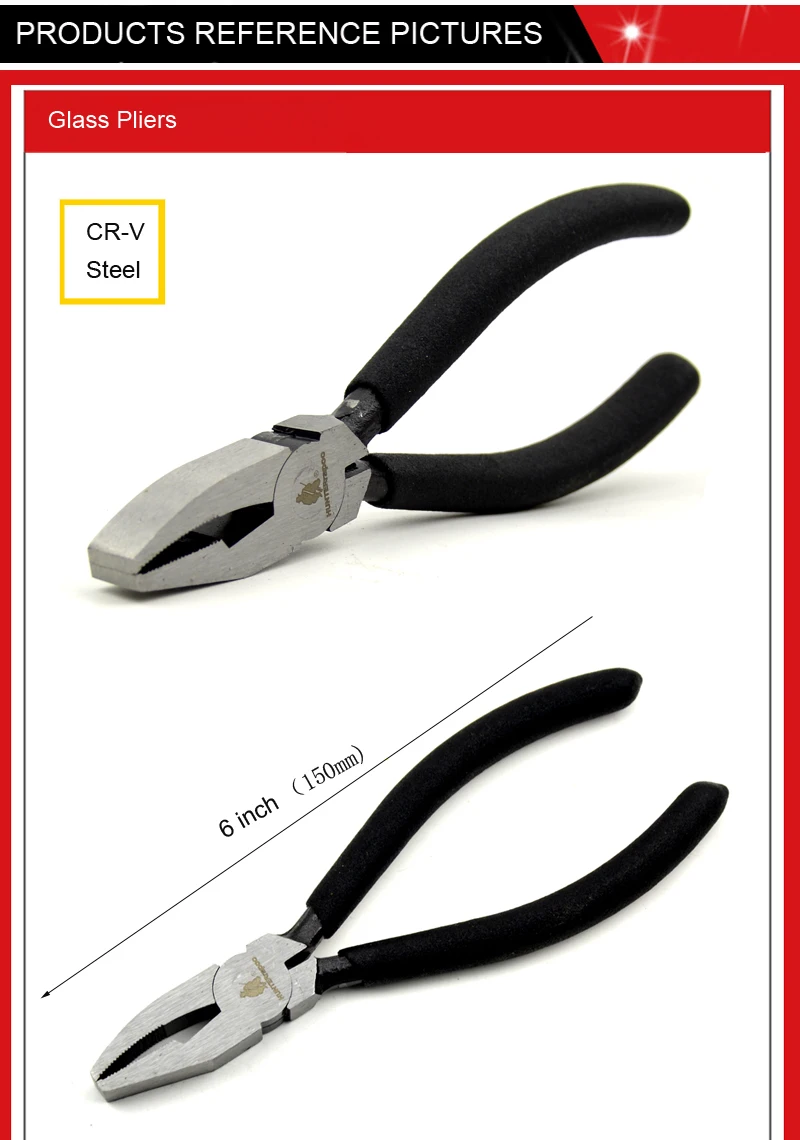Этот комплект включает в себя: 1 шт. 6-дюймовая выпуклая головка, 1 шт. 8-дюймовые плоскогубцы, 1 шт. двухколесные мозаичные плоскогубцы и 1 шт. плиточные щипцы