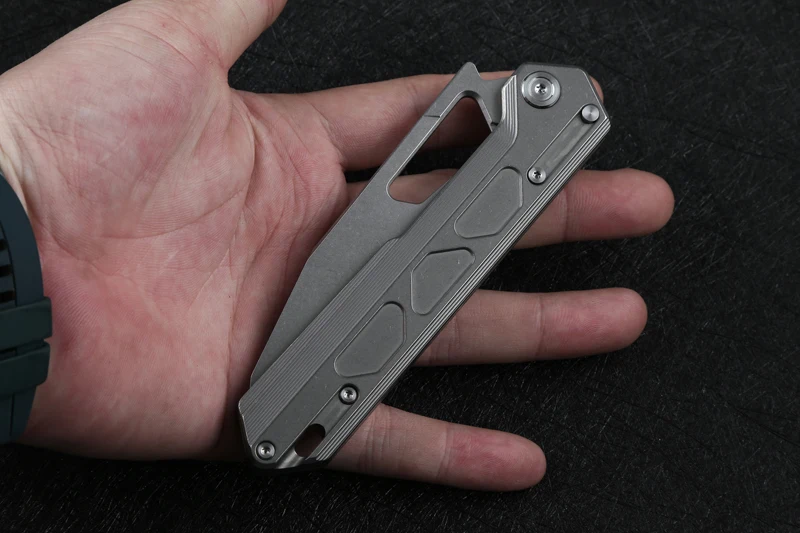 Технические характеристики Общая длина: 8,346 "(212 мм) Длина лезвия: 3,858 "(98 мм) Ширина лезвия: 1,299 "(33 мм) Толщина лезвия: 0,118 "(3 мм) Материал лезвия: VG10(59-60hrc) Отделка: каменная стирка Длина ручки: 4,724 "(120 мм) Ширина ручки: 0,866 "(22 мм) Толщина ручки: 0,511 "(13 мм) Материал ручки: титан Вес: 4,2 oz. Нажмите на изображение для просмотра в полный размер (118,8 г) Открывалка: отверстие для большого пальца Система: KVT керамический шариковый подшипник