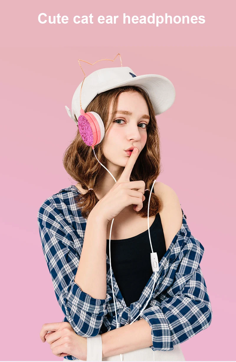 Милые и стильные: детские наушники с двумя кошачьими ушками на верхней части повязки на голову.