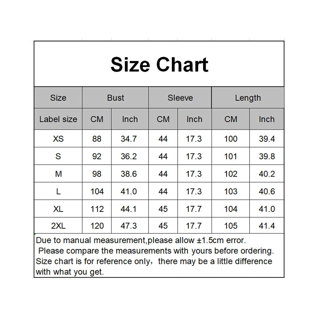 [Наш Размер XL] Обхват груди: 112 см/44,09 дюйма, рукав: 45 см/17,72 дюйма, длина: 104 см/40,94 дюйма (прибл.)