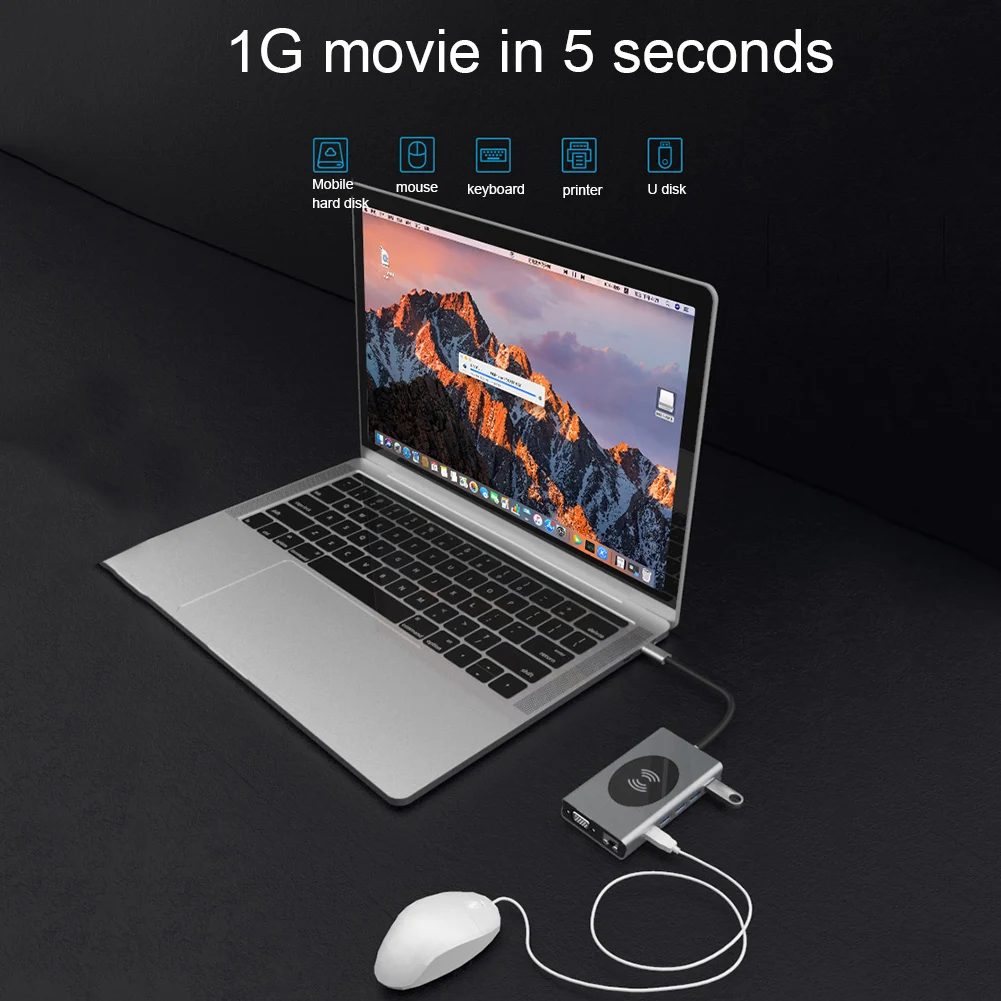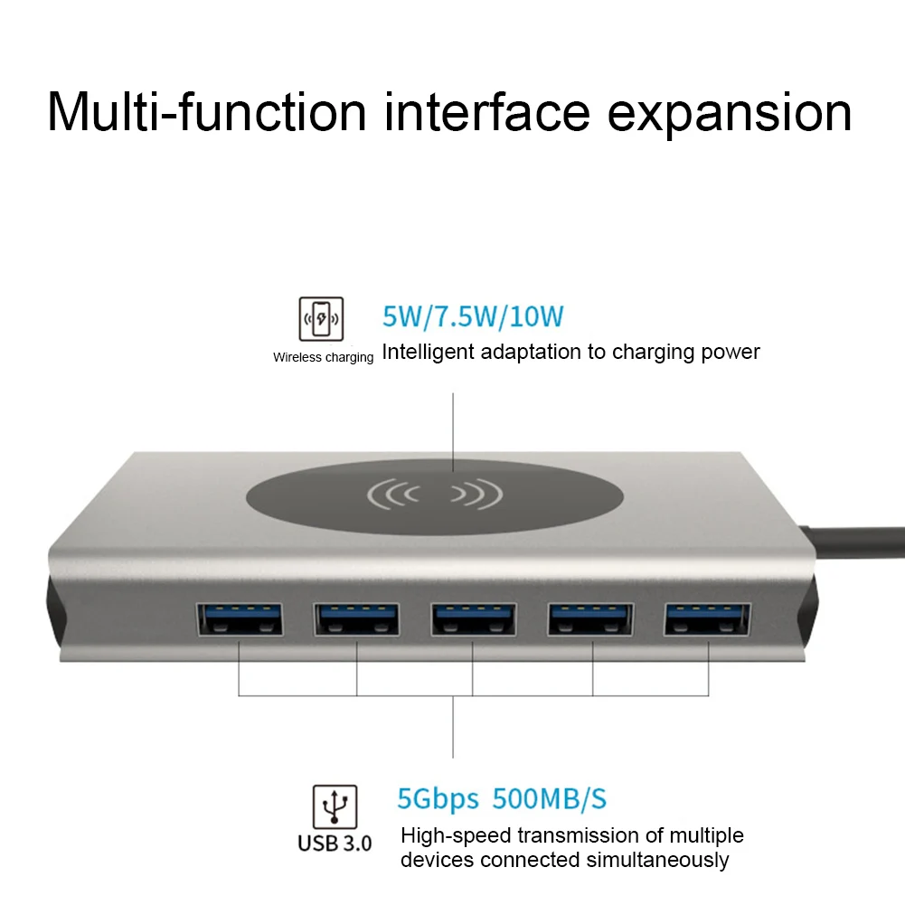 13 в 1: HDMI + VGA + USB3.0 * 5 + SD + TF + RJ45 + PD + аудио 3,5 мм + 10 Вт беспроводной зарядки