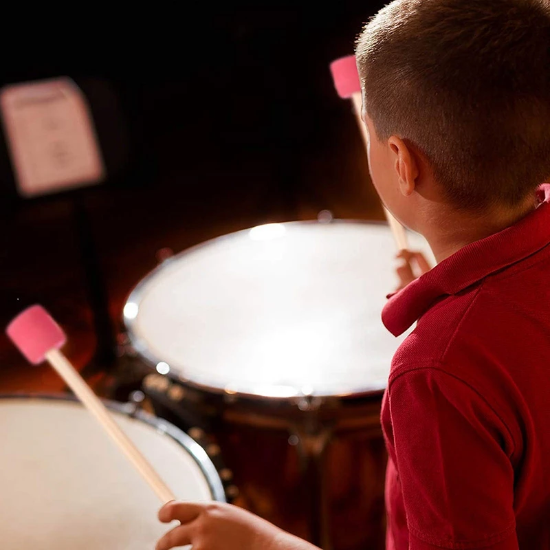 4 Упак. Басовые барабанные молотки палочки Ударные молотки с поролоновой головкой и деревянной ручкой из белого дуба для маршей