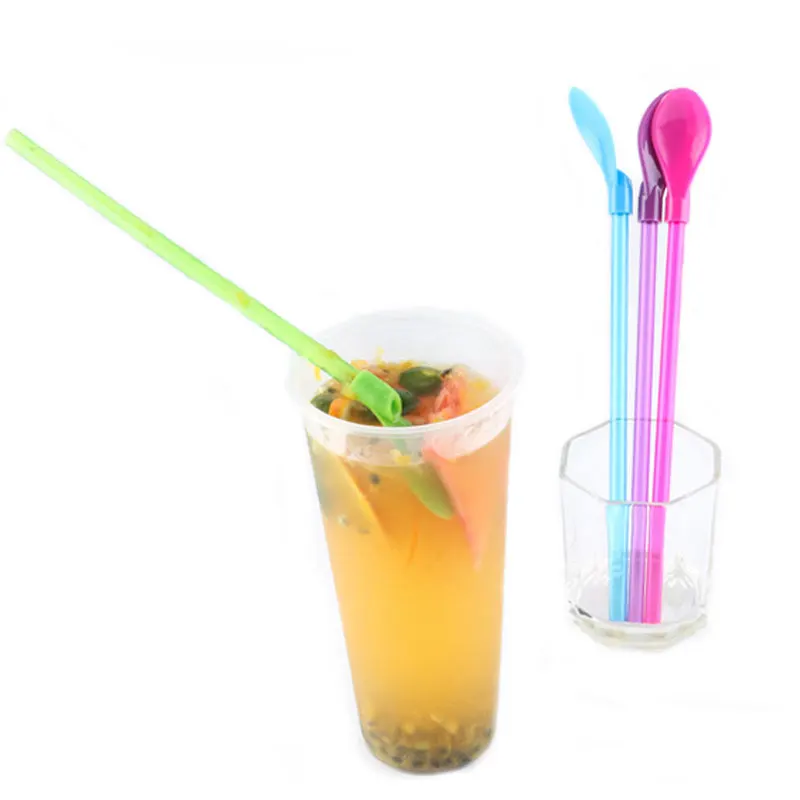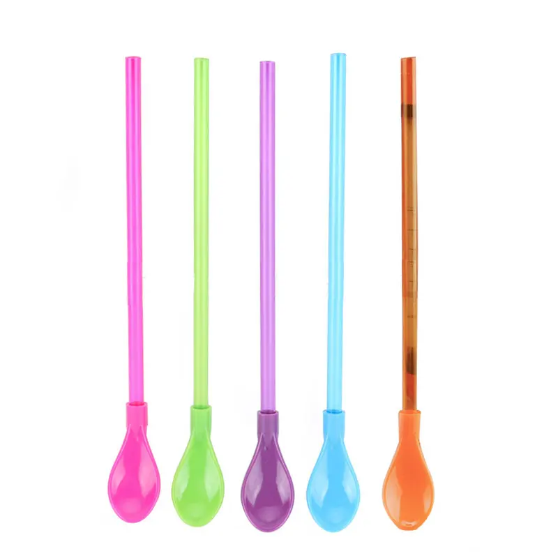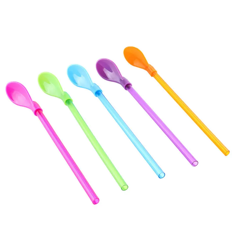 Креативная соломенная ложка двойного назначения, пластиковая ложка, встроенная соломенная ложка, посуда