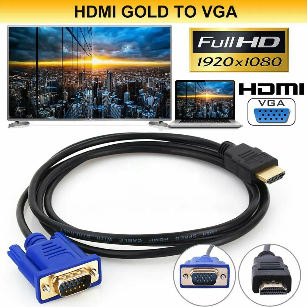 1,5 м/16 футов Золотой HDMI папа к VGA папа 15 Pin видео адаптер кабель 1080P 6 футов для ТВ DVD коробка