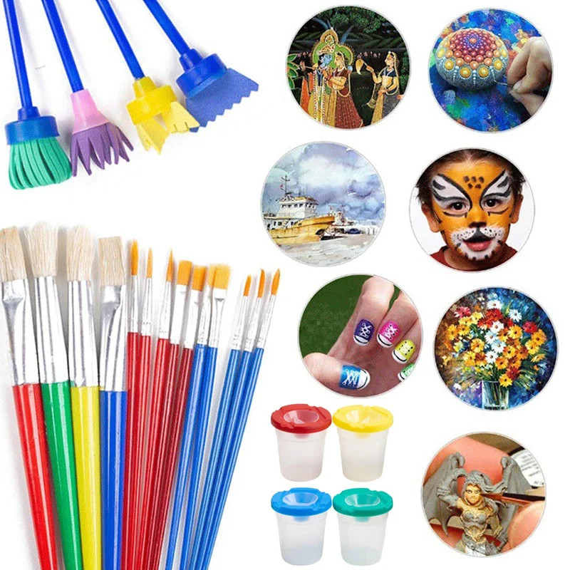 1. Посылка включает в себя: 4 круглых щетинок, 10 детальных кистей для краски, 6 Плоских кистей для краски, 4 губки для рисования кистей для рисования, 4 чашки для нанесения краски, 6 шт Цвет palettes.12 различных типов отвечают всем студентам требования к окраске.