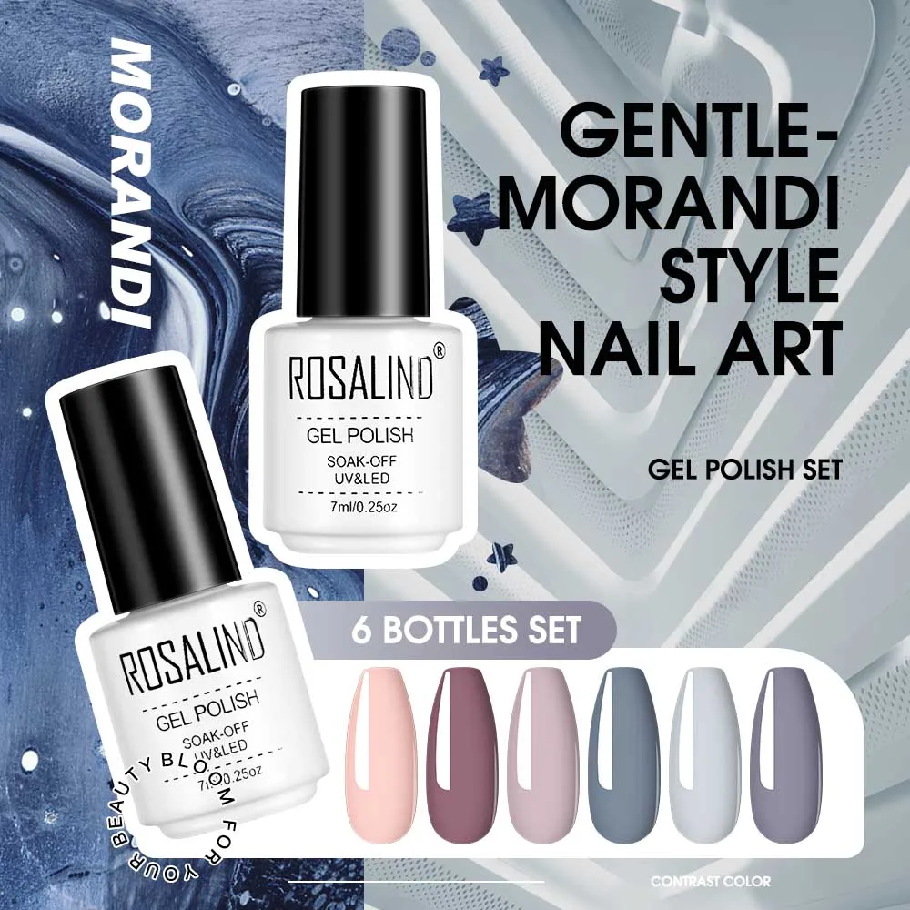 ROSALIND Набор для маникюра с 6 цветами гель-лаком УФ светодиодный набор инструментов для ногтей поли аксессуары для укладки гелем базовый гель