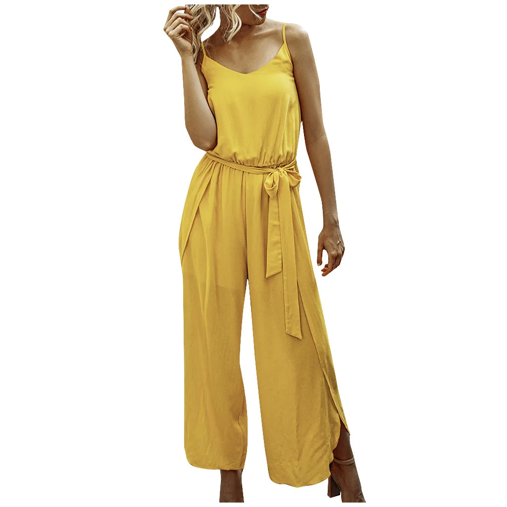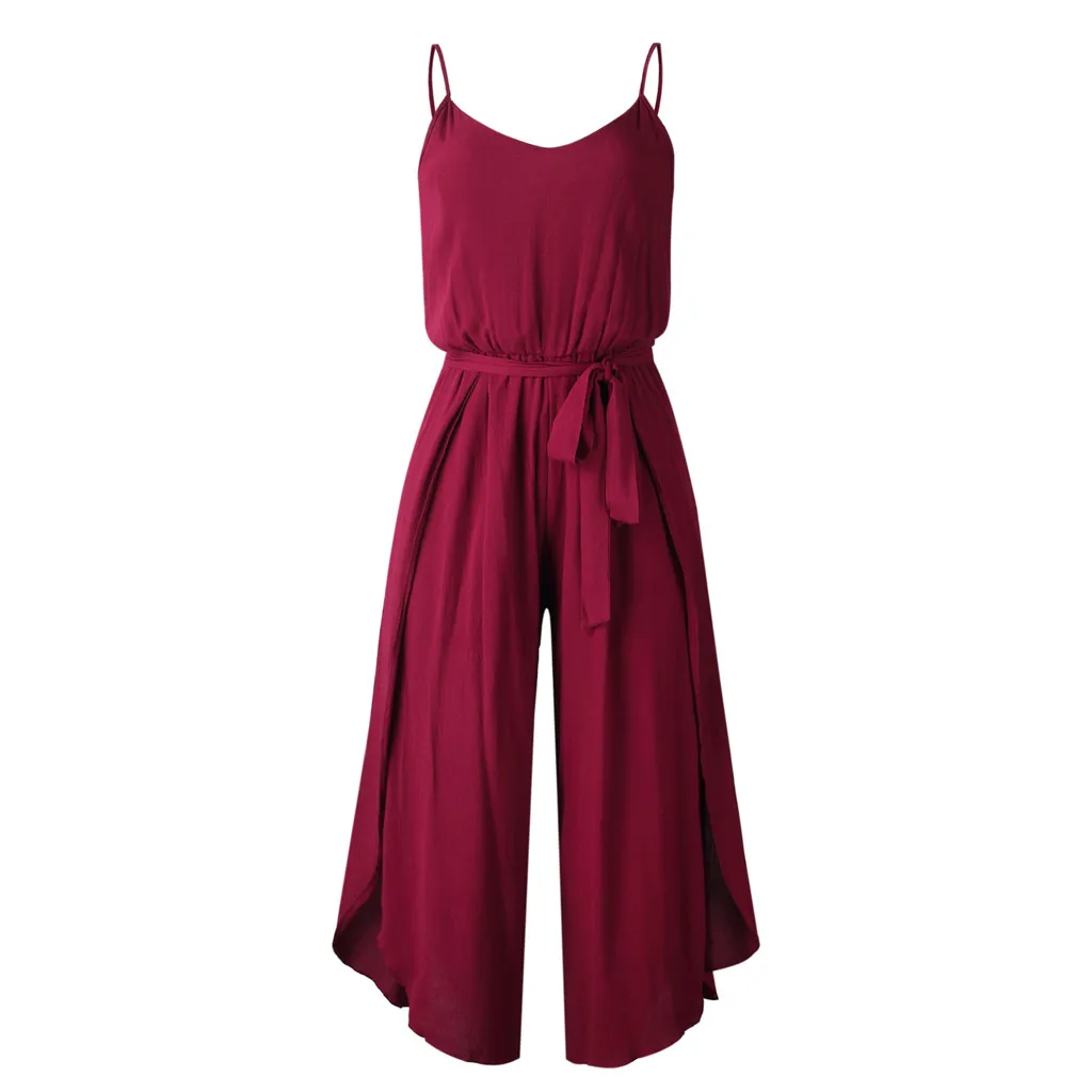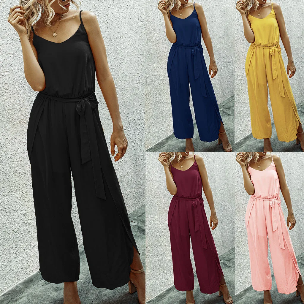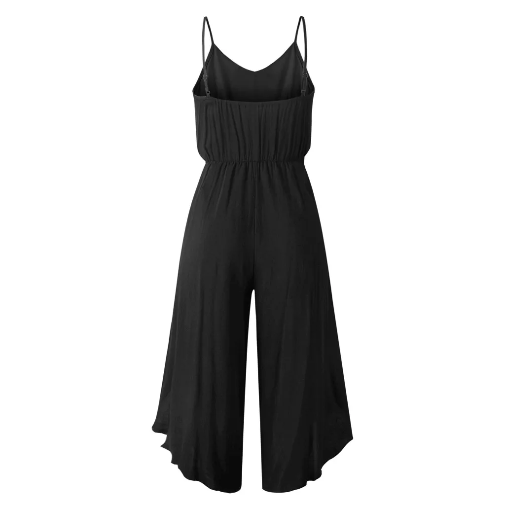 Женский сплошной длинный комбинезон без рукавов, повседневный цельный свободный верхний комбинезон