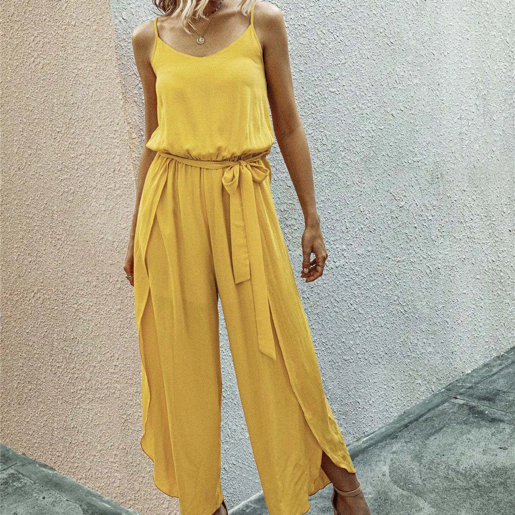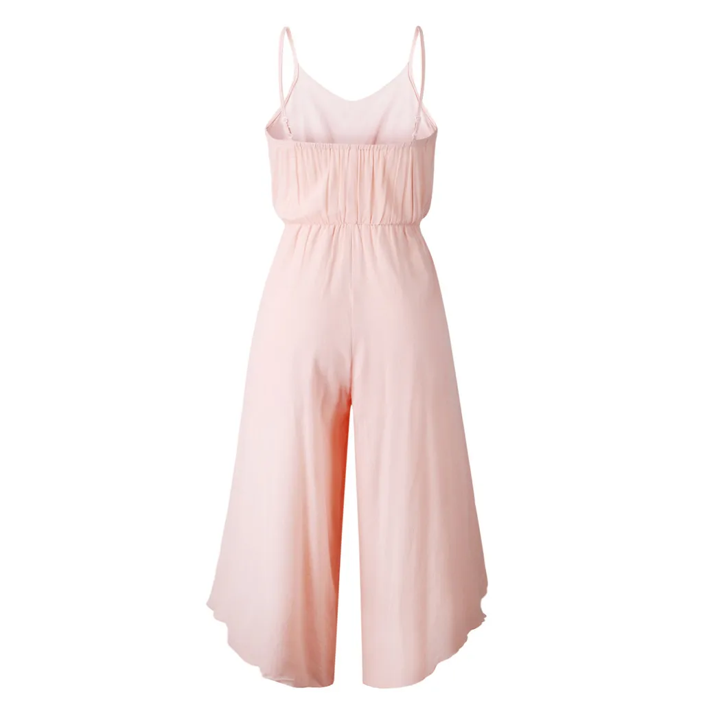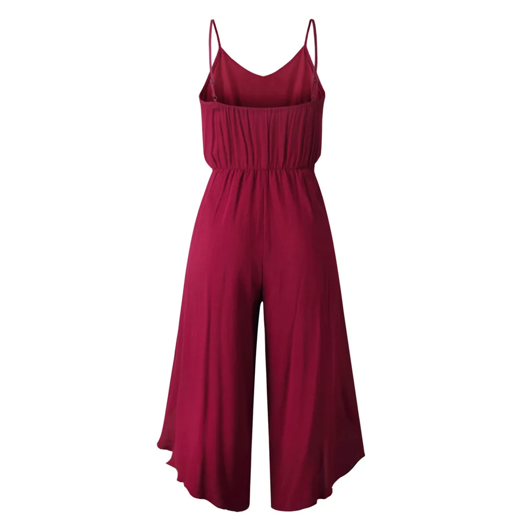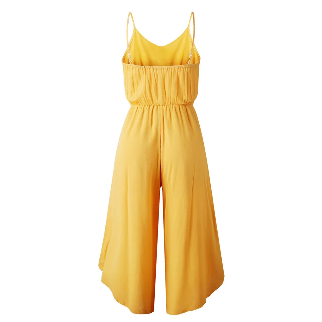 Женский сплошной длинный комбинезон без рукавов, повседневный цельный свободный верхний комбинезон
