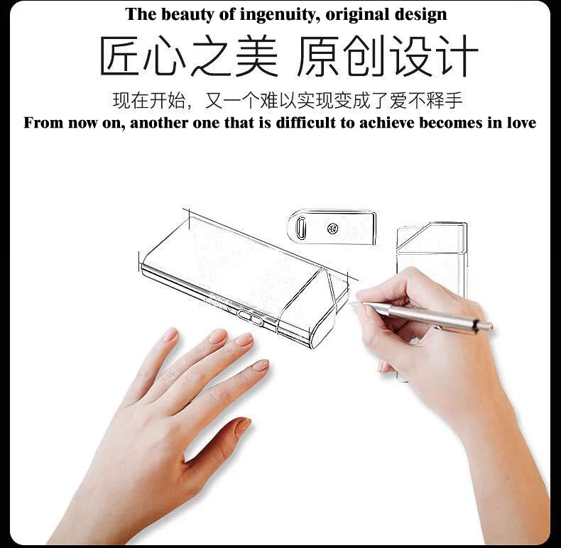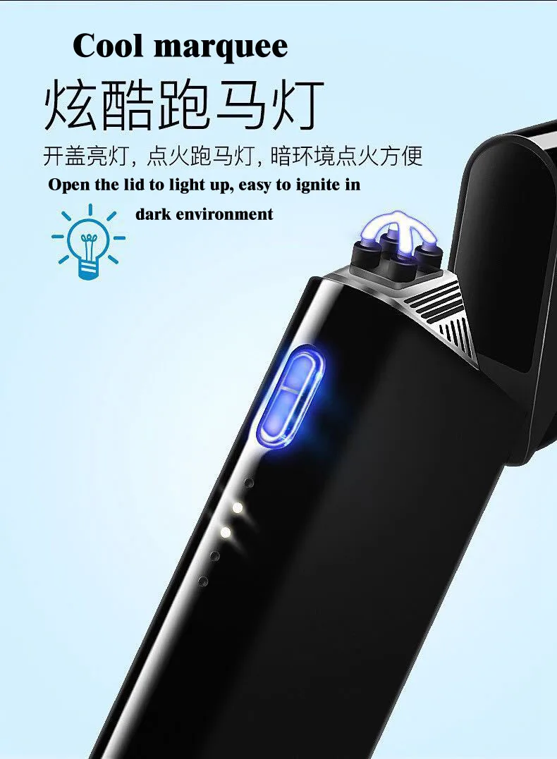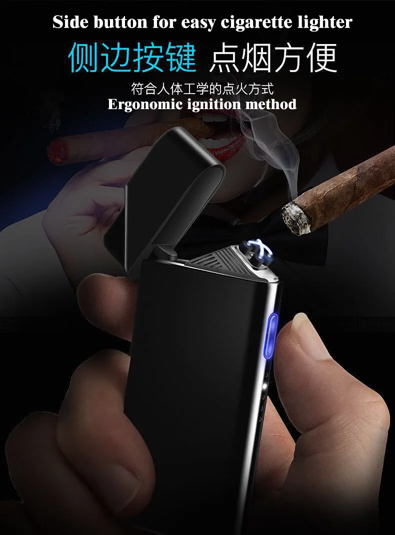 Красота изобретательности, оригинальный дизайн Двойное зажигание тока дуги, боковые кнопки, удобные для освещения сигарет Крутой шатер, дисплей батареи Металлический корпус, интегрированное покрытие